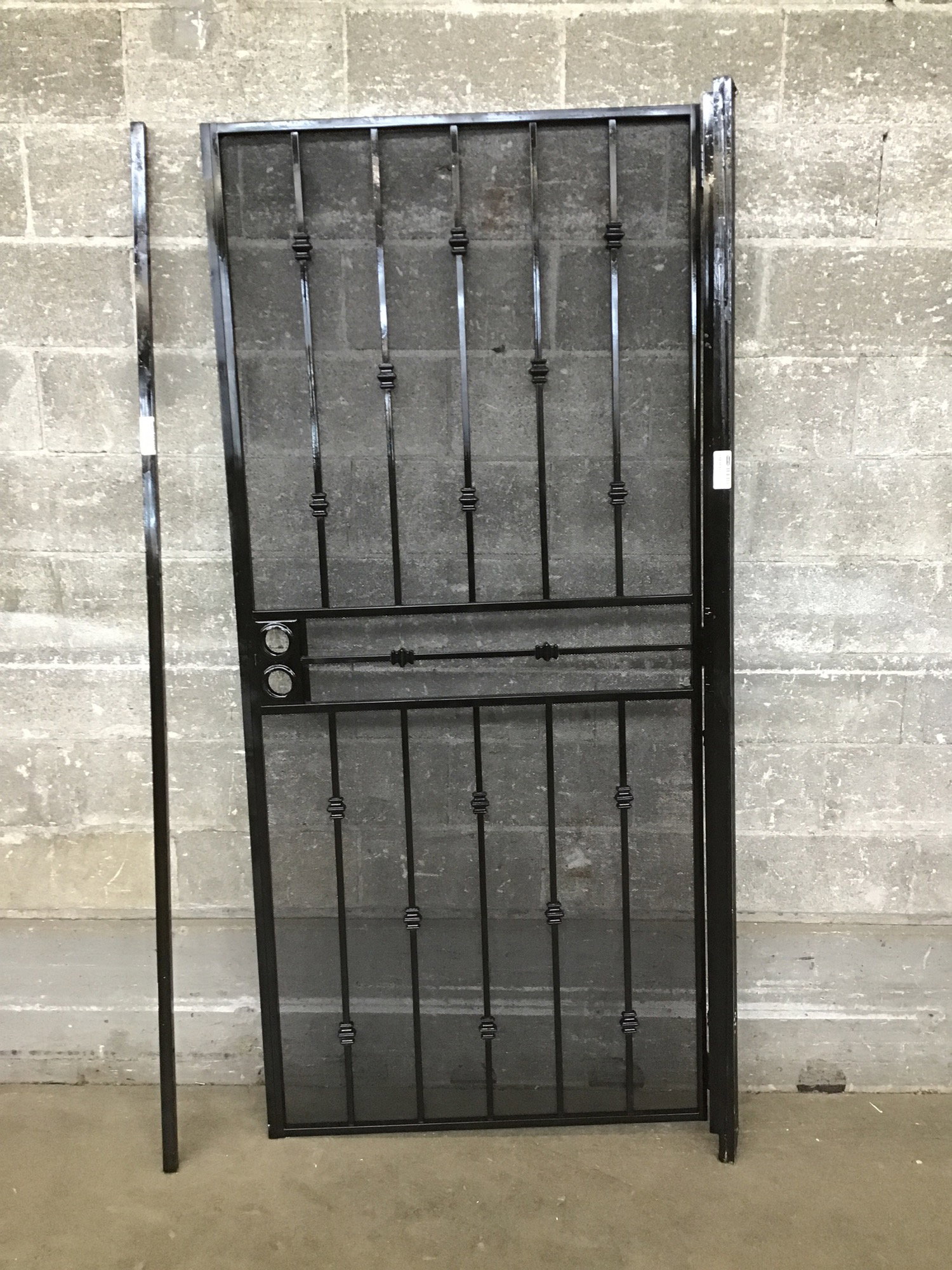 38" Black Steel Security Door with static frame piece attached. Has space for a knob and deadbolt.
