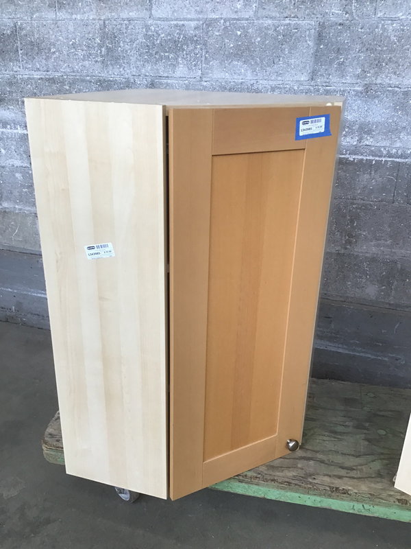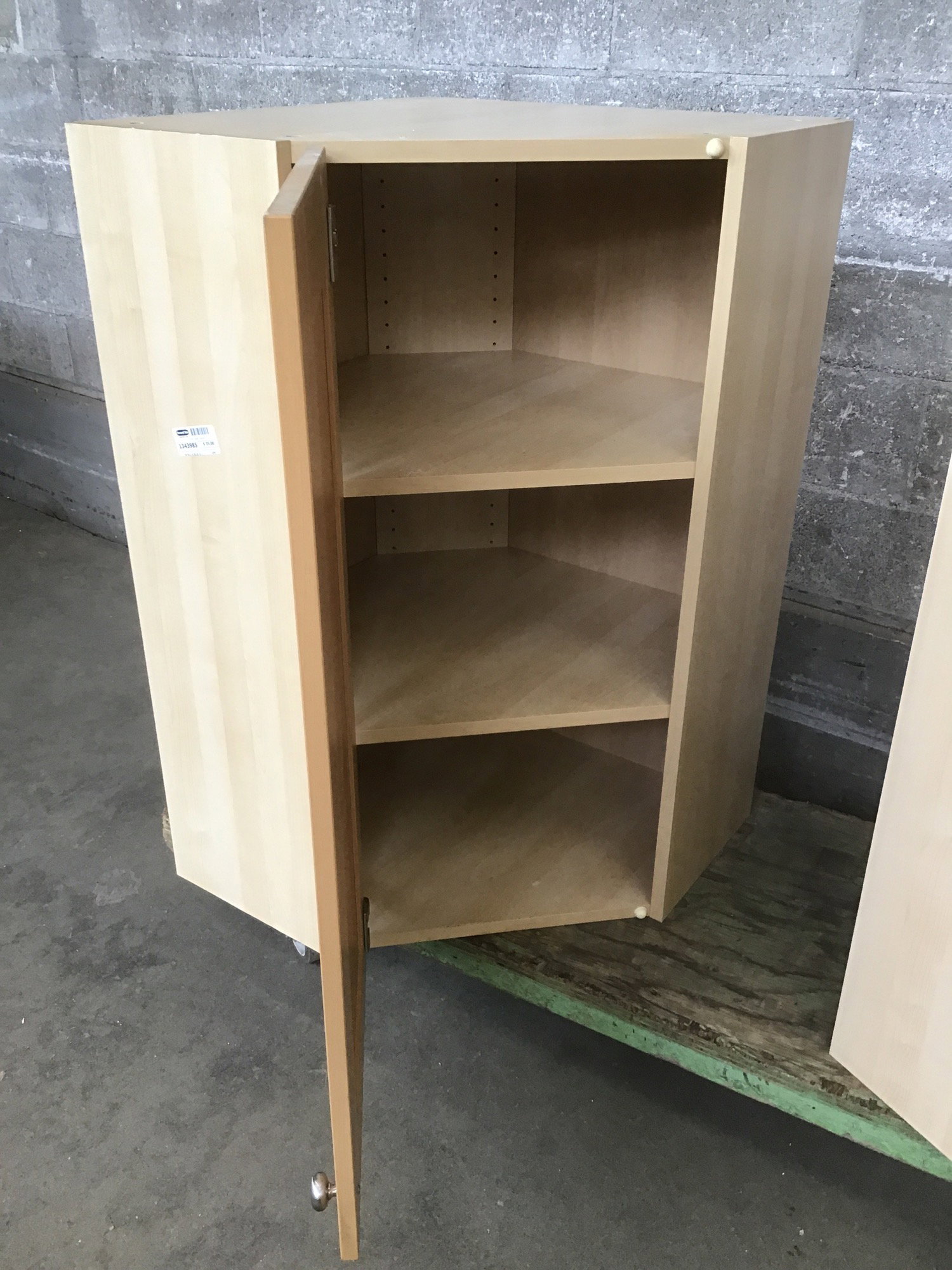 Ikea corner upper with a beech front face and shaker-style panel. Has adjustable height shelves inside.