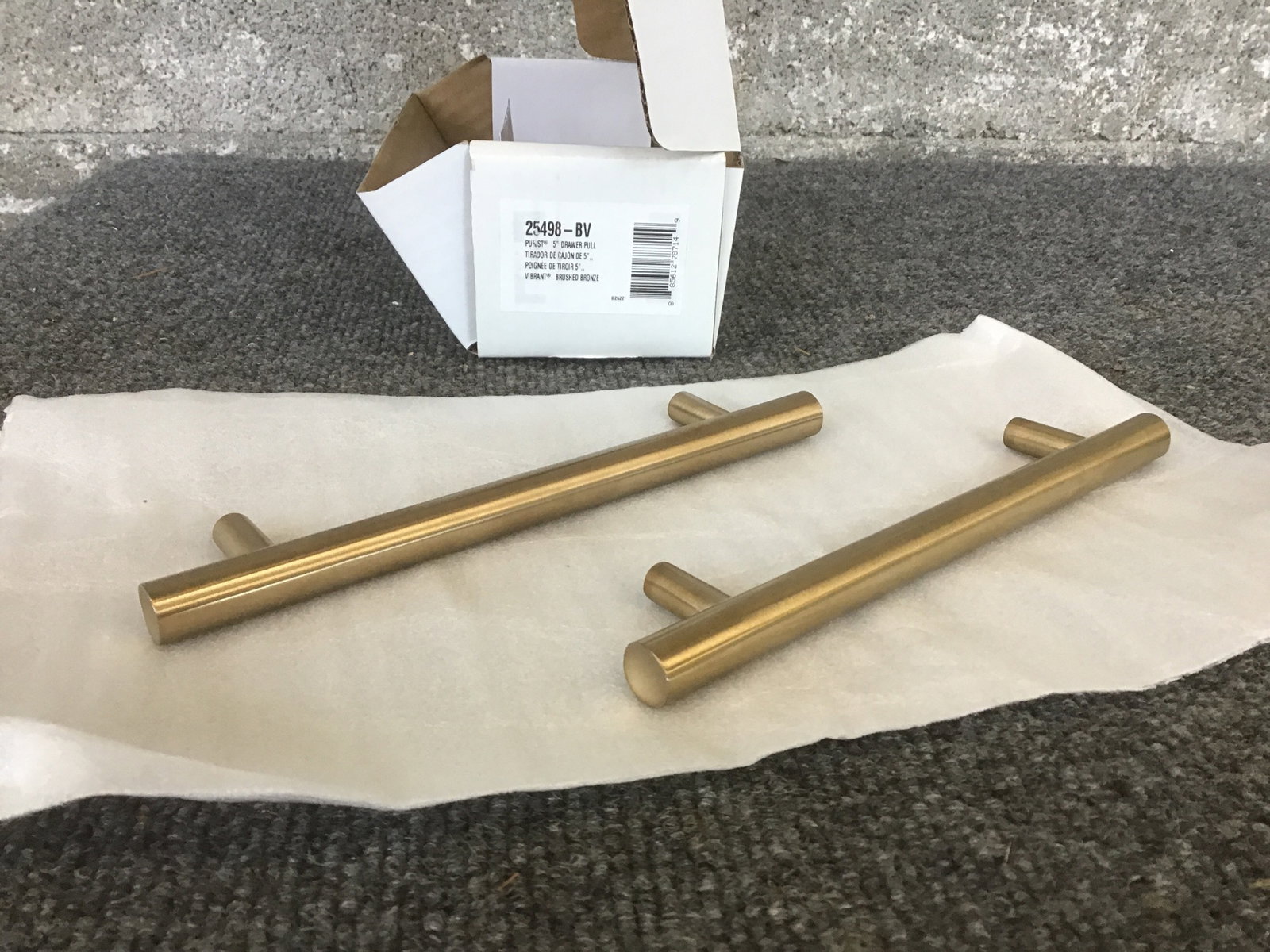 A pair of 5" drawer pulls from Kohler's Purist collection in "vibrant brushed bronze". Revamp your vanity or side table with some sleek handles! These retail for $45 per piece.