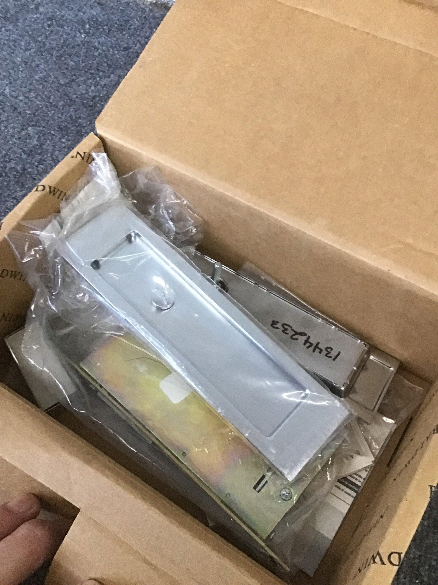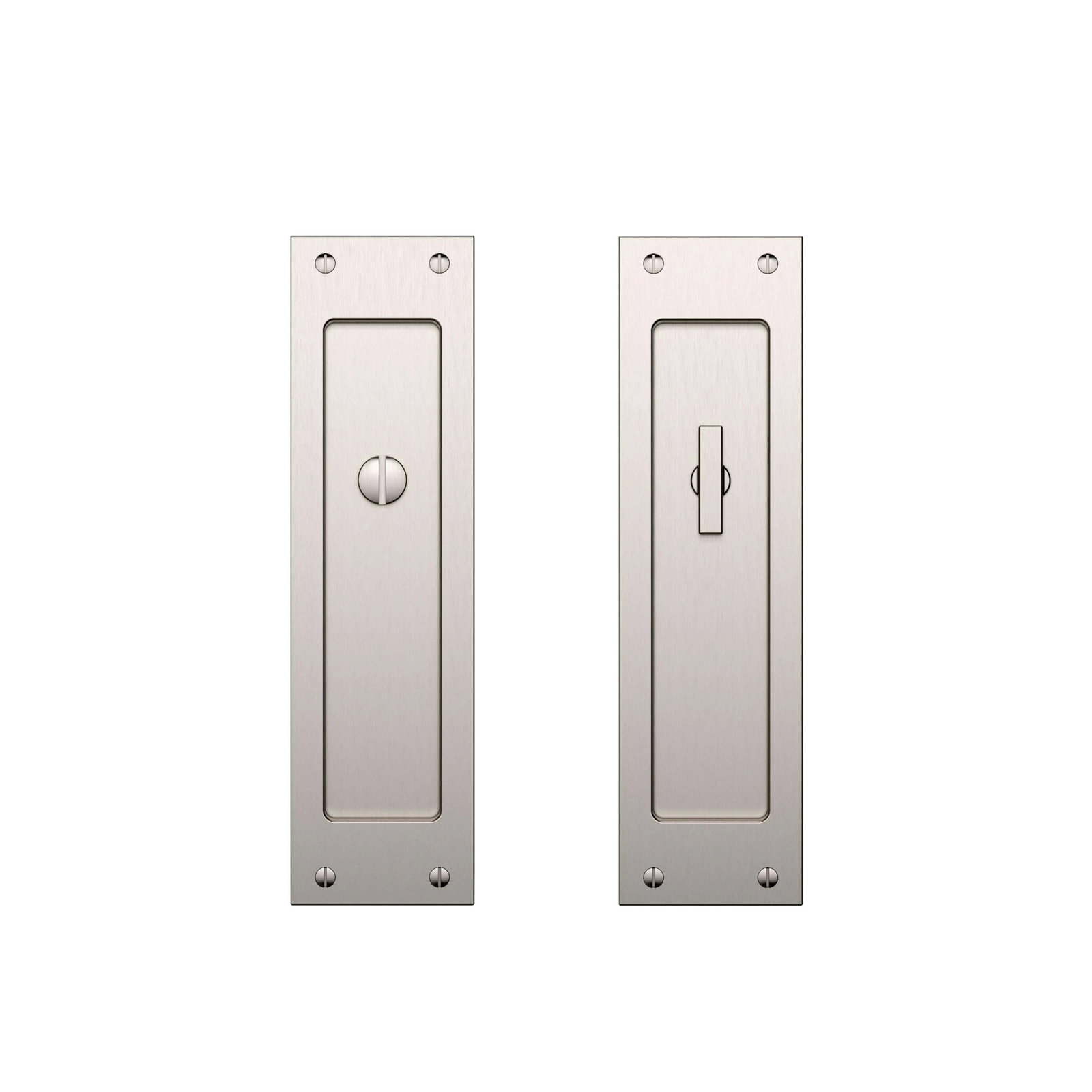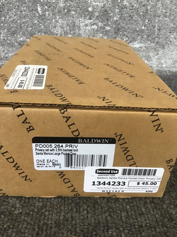 "Santa Monica" pocket door privacy set from Baldwin in satin nickel. This set retails for $788 directly from Baldwin, so this is a screaming hot deal!