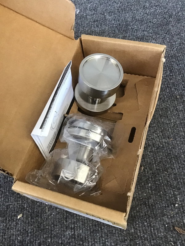 A modern round dummy knob set from Emtek's "Verve" line in satin nickel. New and never installed! A single dummy knob retails for just under $100 online.