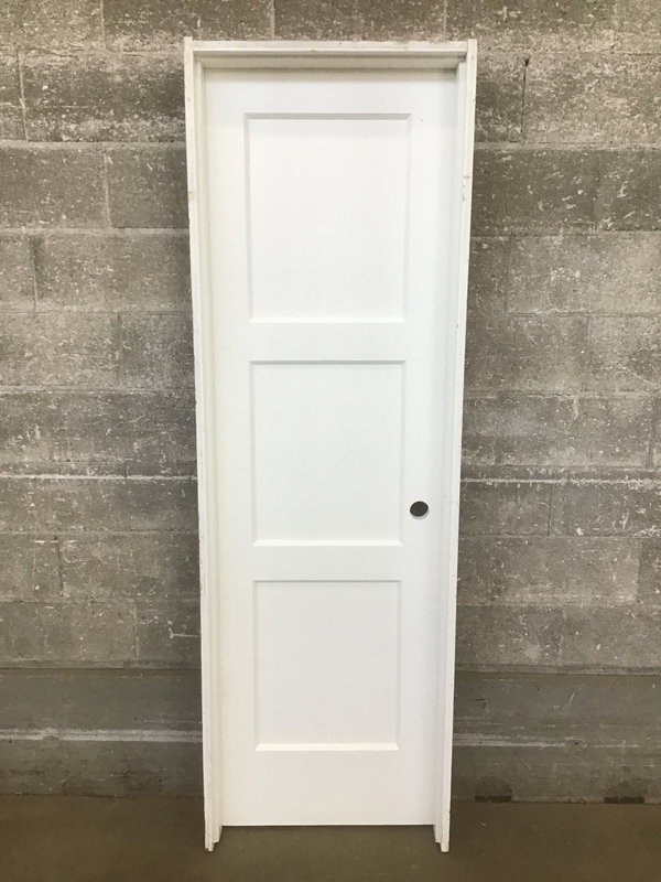 LH swing 24" Three Panel Interior Door painted white with brushed bronze hardware.