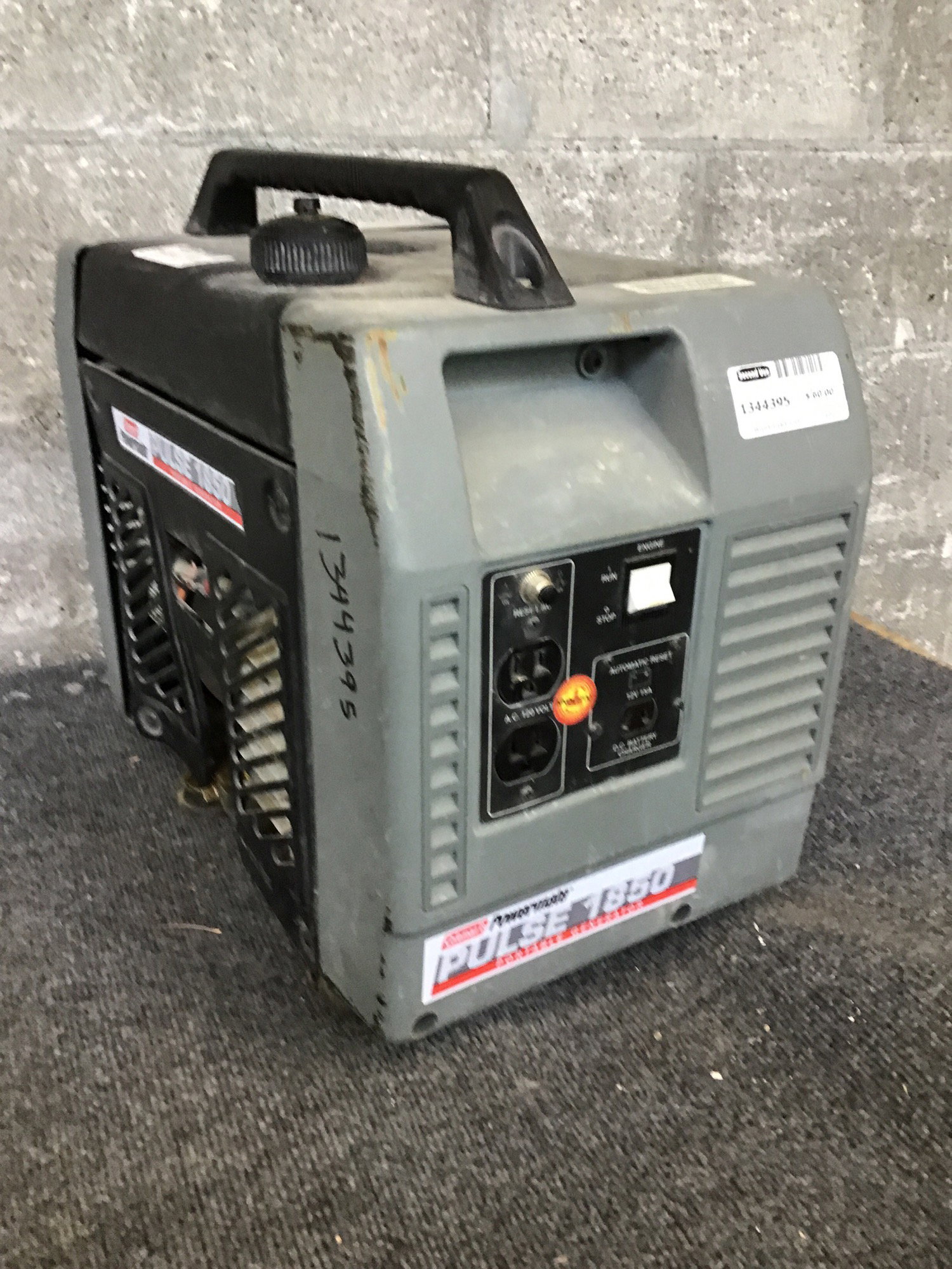This is a Coleman Powermate Pulse 1850 portable generator. Sold as is, untested. Pull cord has compression but the tank is bone dry so unable to test.