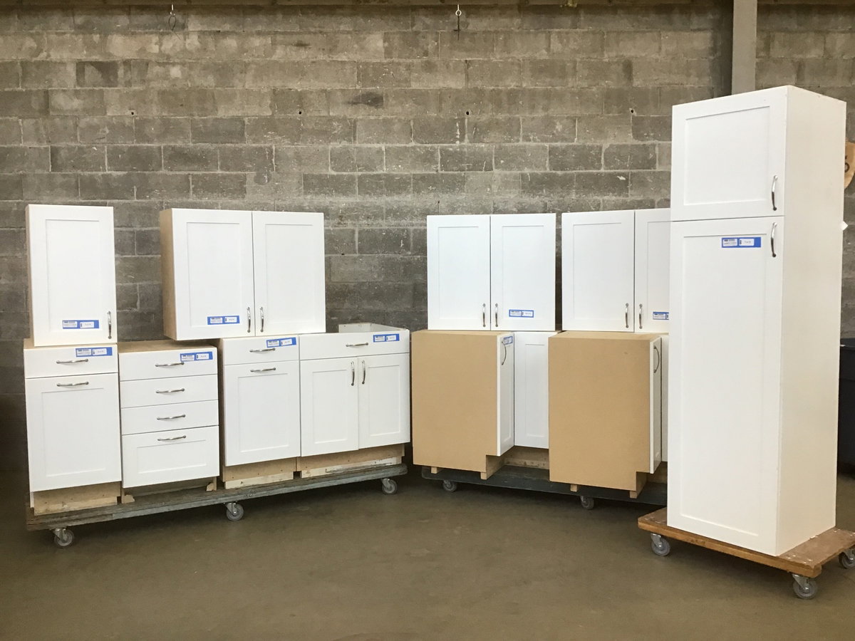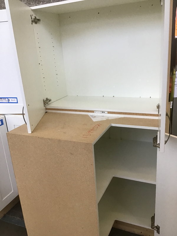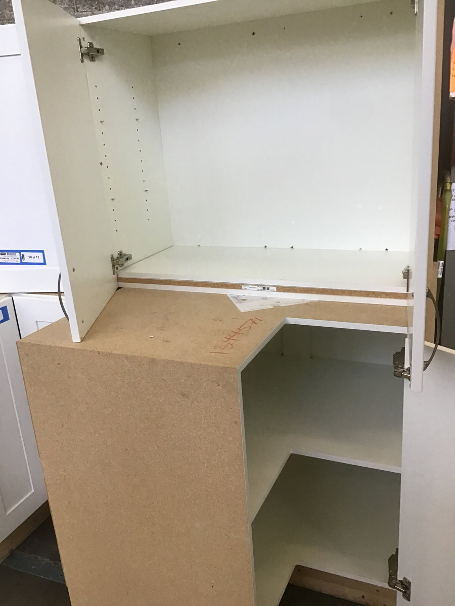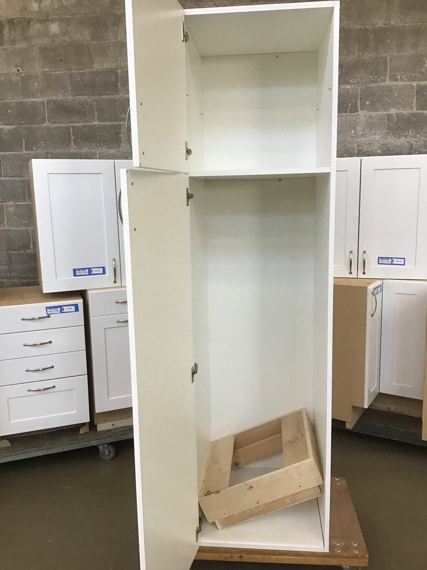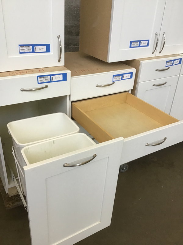 Bases - all 36.5h and 24d unless otherwise noted 1x sink base 30w 2x rubbish bin/deep drawers 18w 1x 4-drawer base 21w (the toe kick on this one needs repair) 2x corner bases 23.125d x 35.25w 1x pantry 22.5w x 84h x 24d