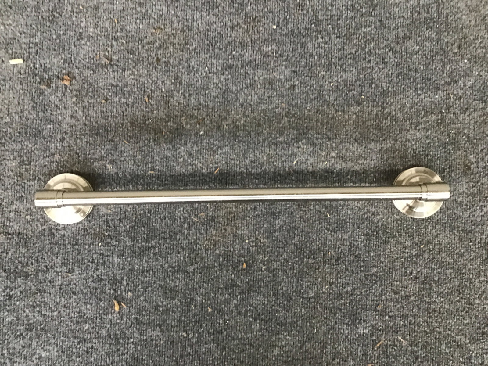 Nickel bathroom towel bar, three pieces in total.