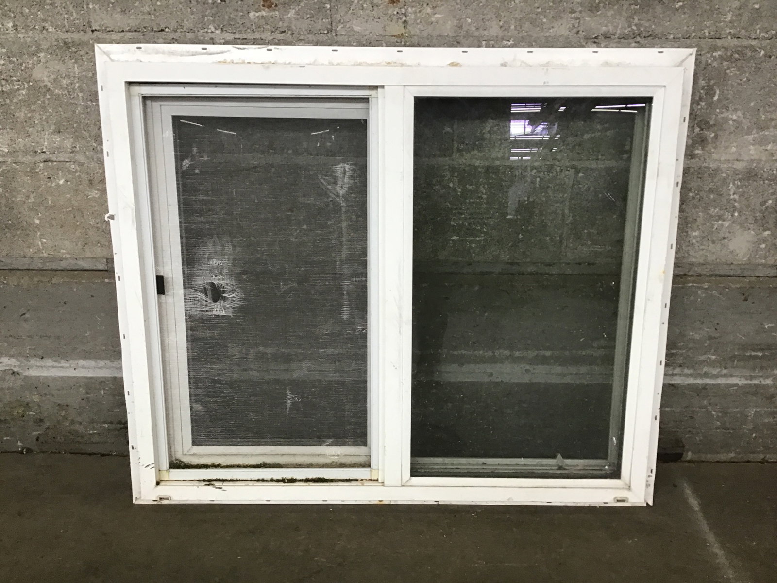 This XO vinyl slider window is a little dirty and on the older side but is still sliding smoothly and the thermopane seals appear to be in tact. Would be great for a shed or playhouse.