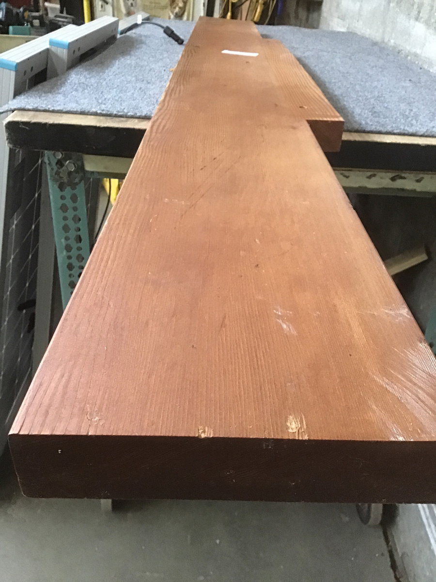 Clear fir piece, had been a mantel top. Has a notch, but the dimensions given assume you will rip this down to a straight board.