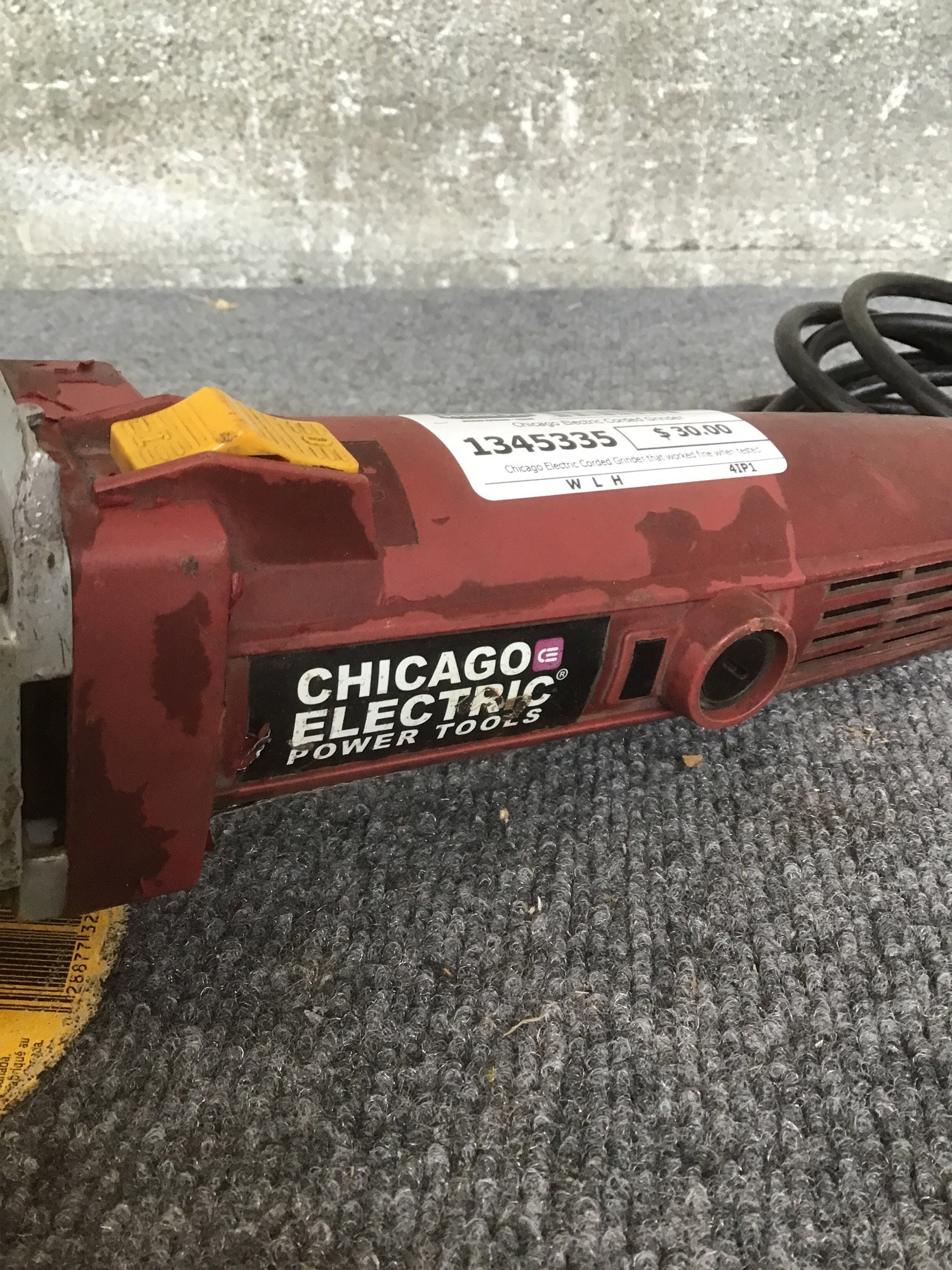 Chicago Electric Corded Grinder that worked fine when tested.