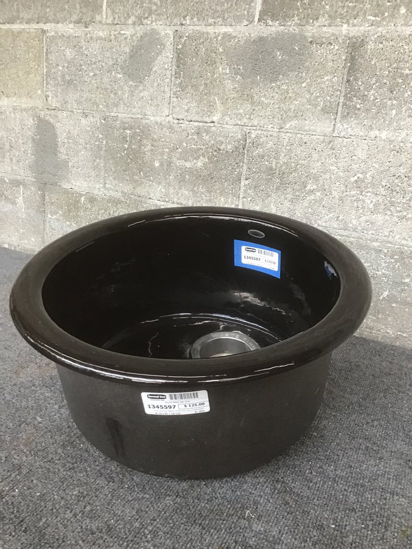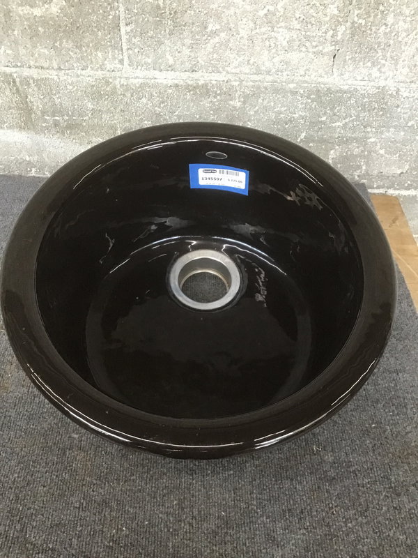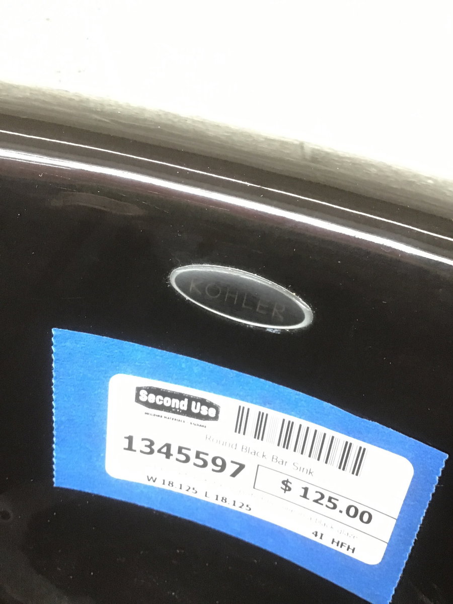 A bar sink from Kohler's "Porto Fino" line in a black glaze finish, with no apparent damage to the finish or any structural issues. Classy and refined, this beaut retails for about $840 new.