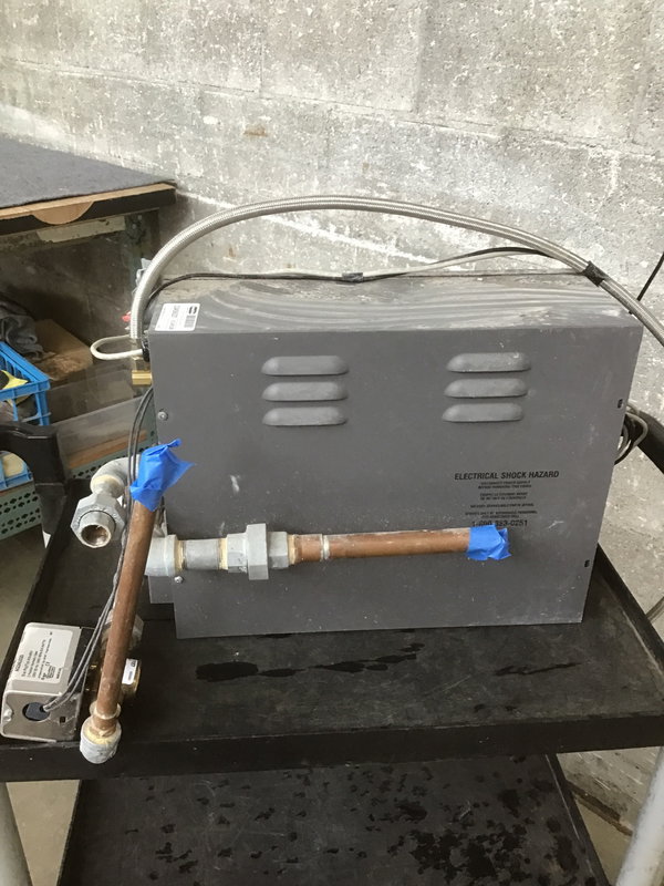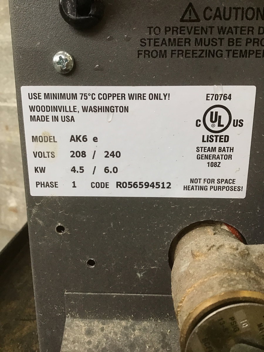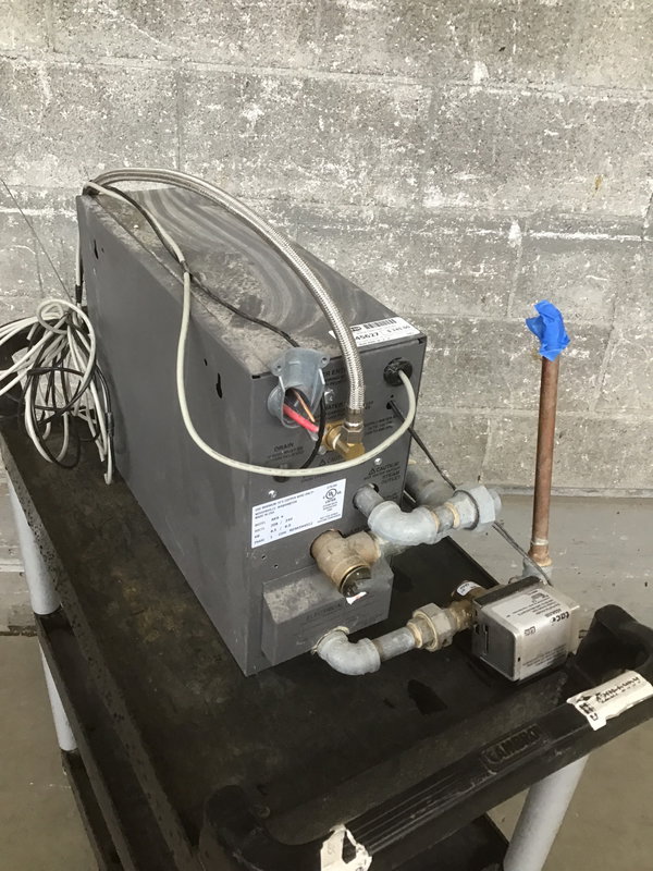 Amerec residential steam bath generator, unknown age. Designed for spaces 80-150 cubic feet. Sold untested - USE AT YOUR OWN RISK! This must be installed by a licensed professional. The current model retails for $2000+.