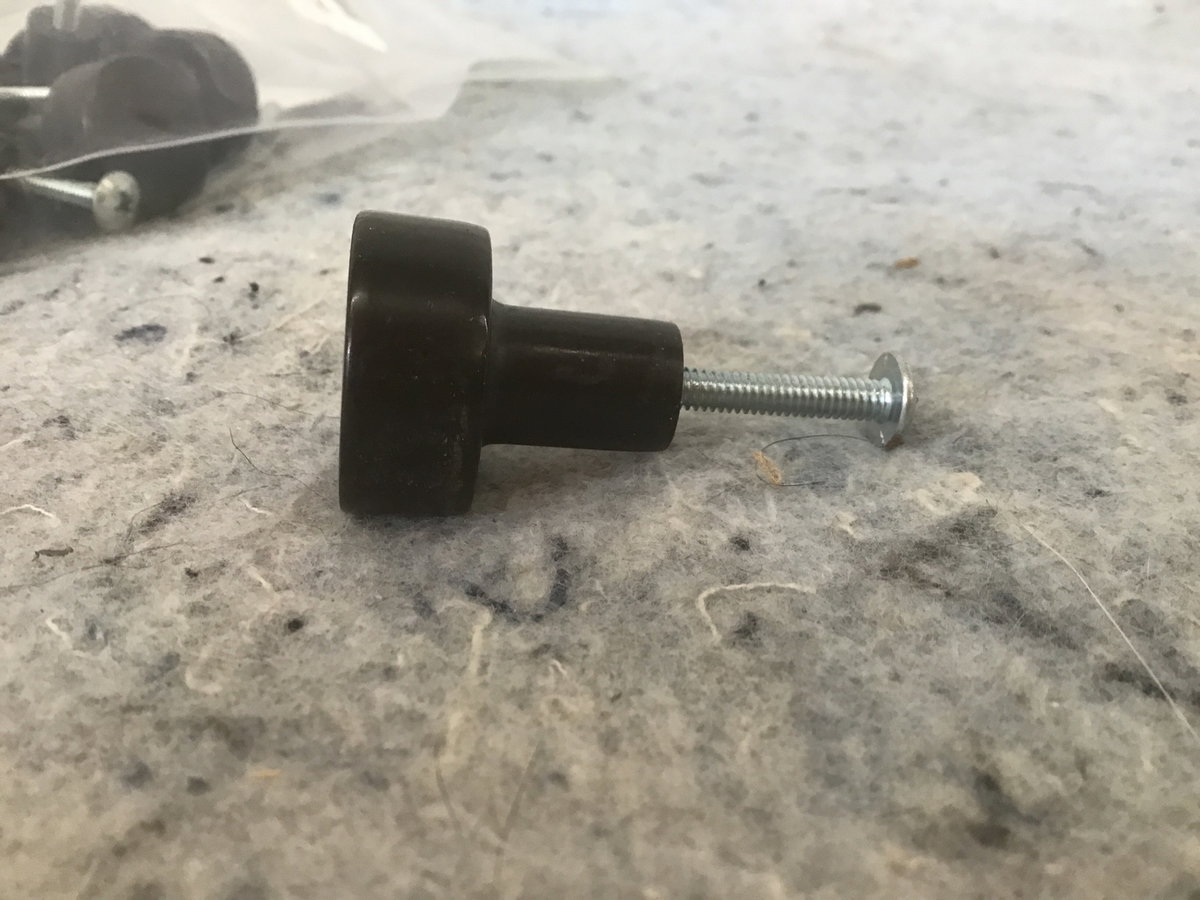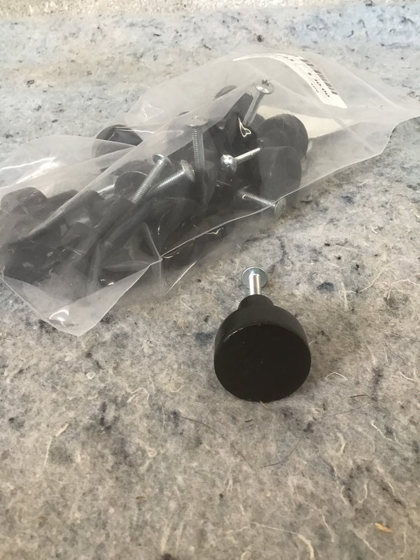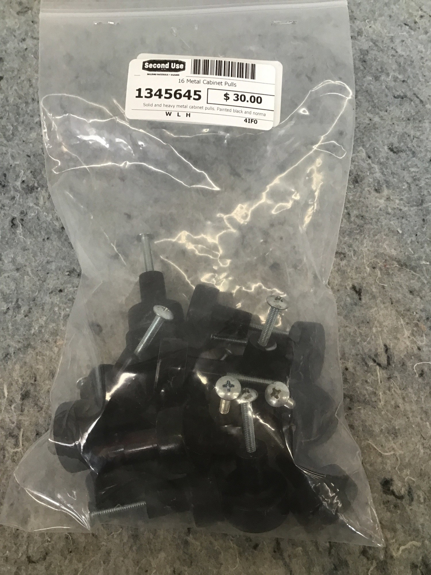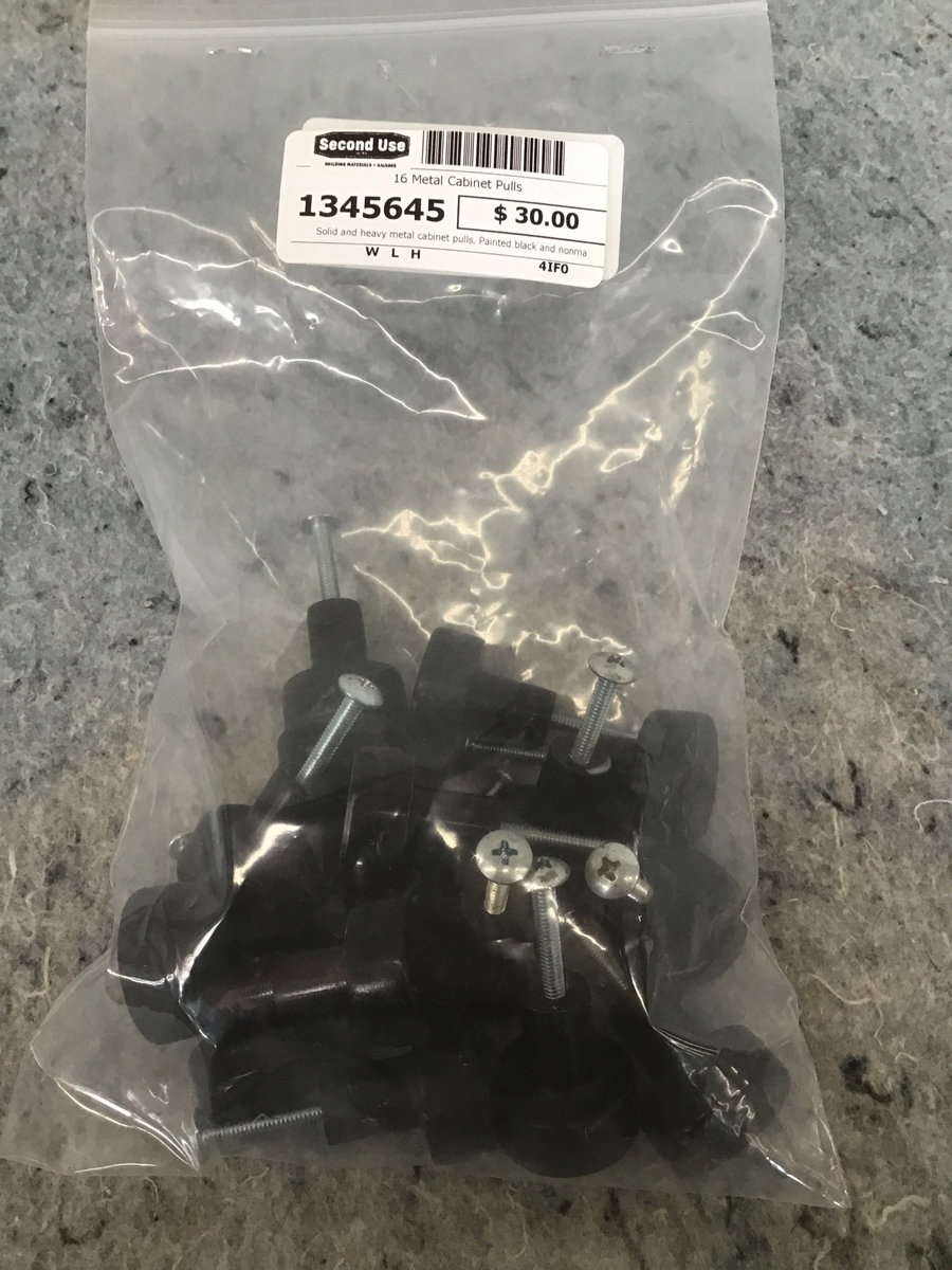 Solid and heavy metal cabinet pulls. Painted black and nonmagnetic. 1" diameter.