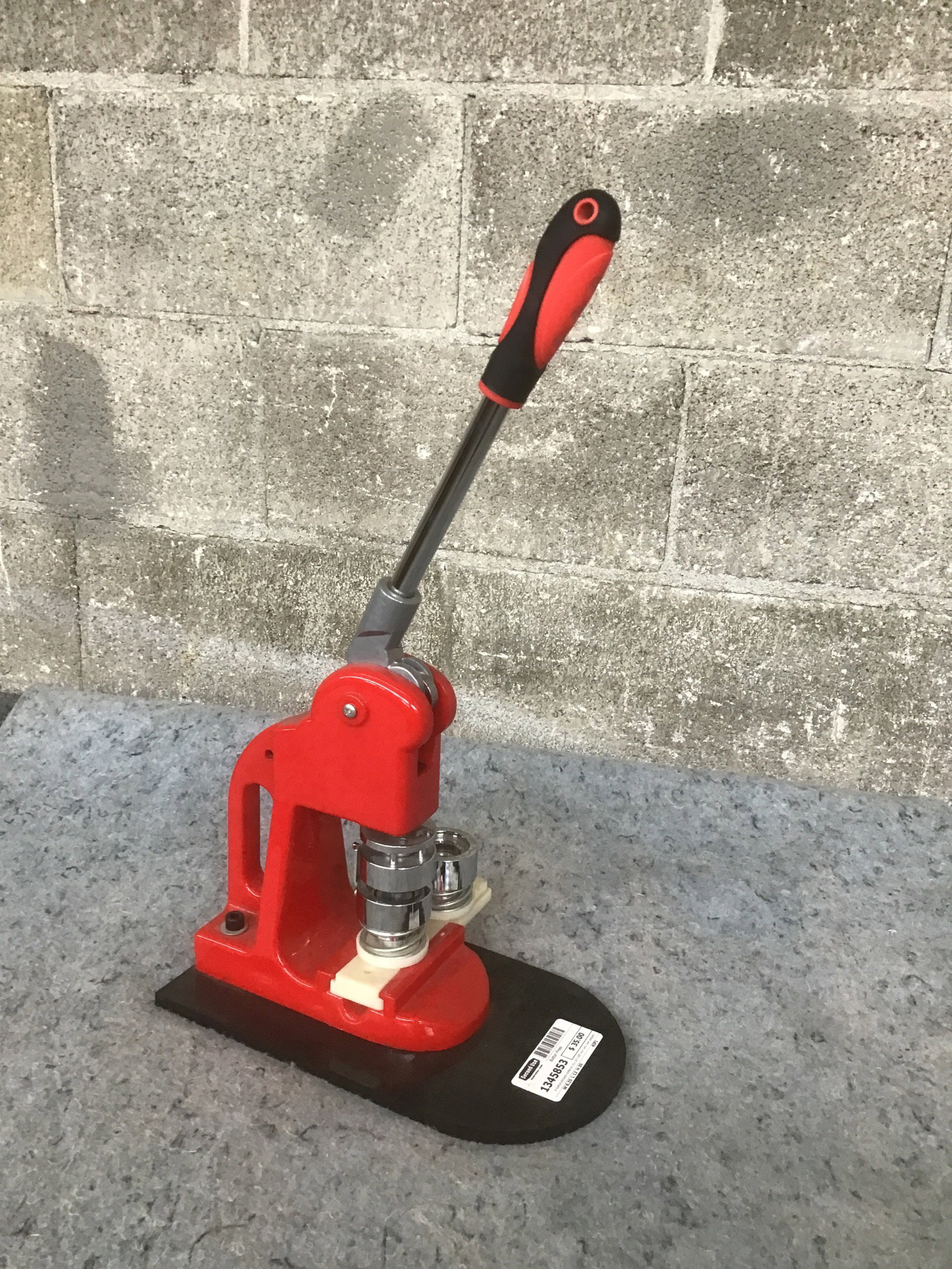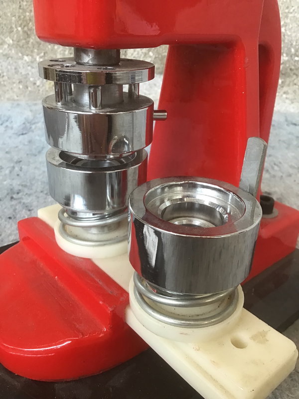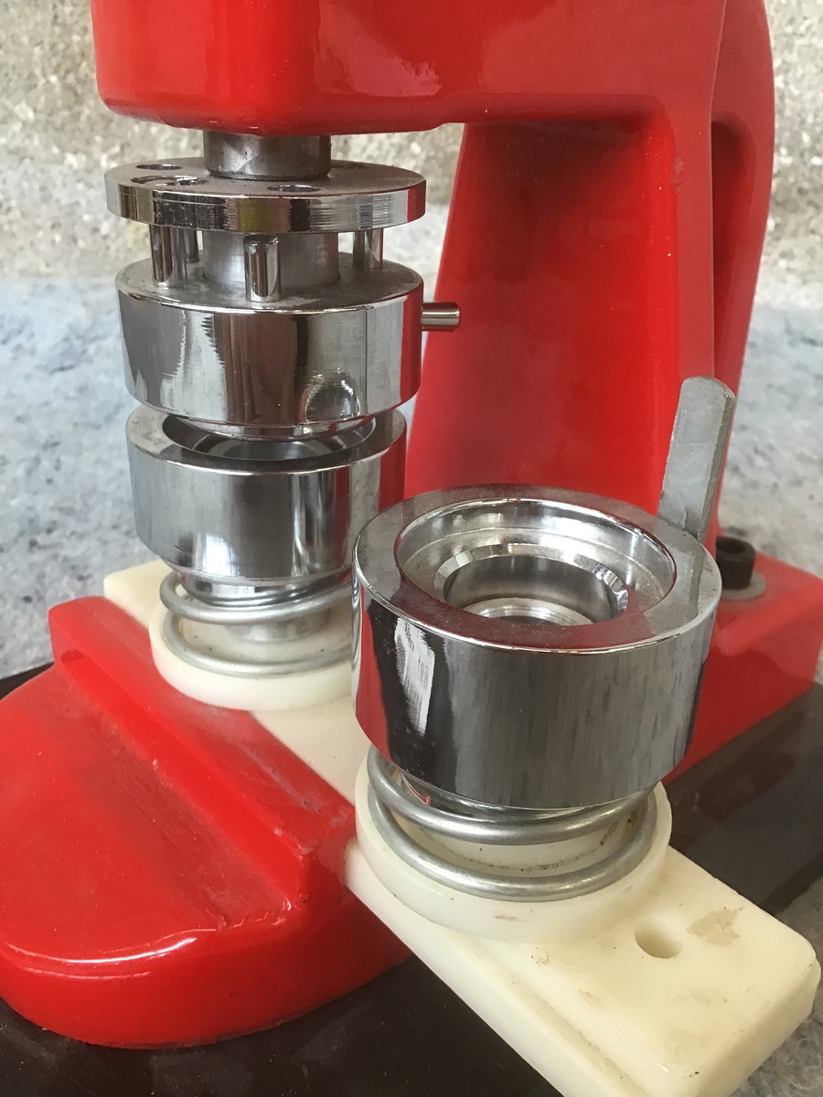 A button/pinback press so you can craft your very own badges! Seems to be in excellent condition, currently set up to take 1 inch blanks. A nearly identical machine retails for $70 at Lowe's.