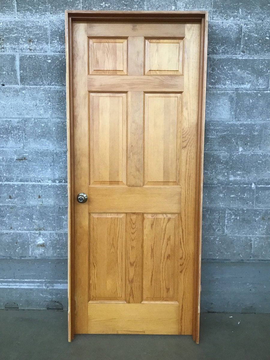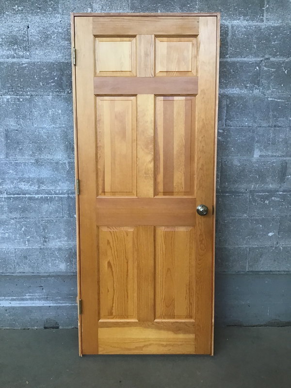 Nicely stained 6-panel interior door in jamb. Has knobs already installed and is ready to rock n' roll!