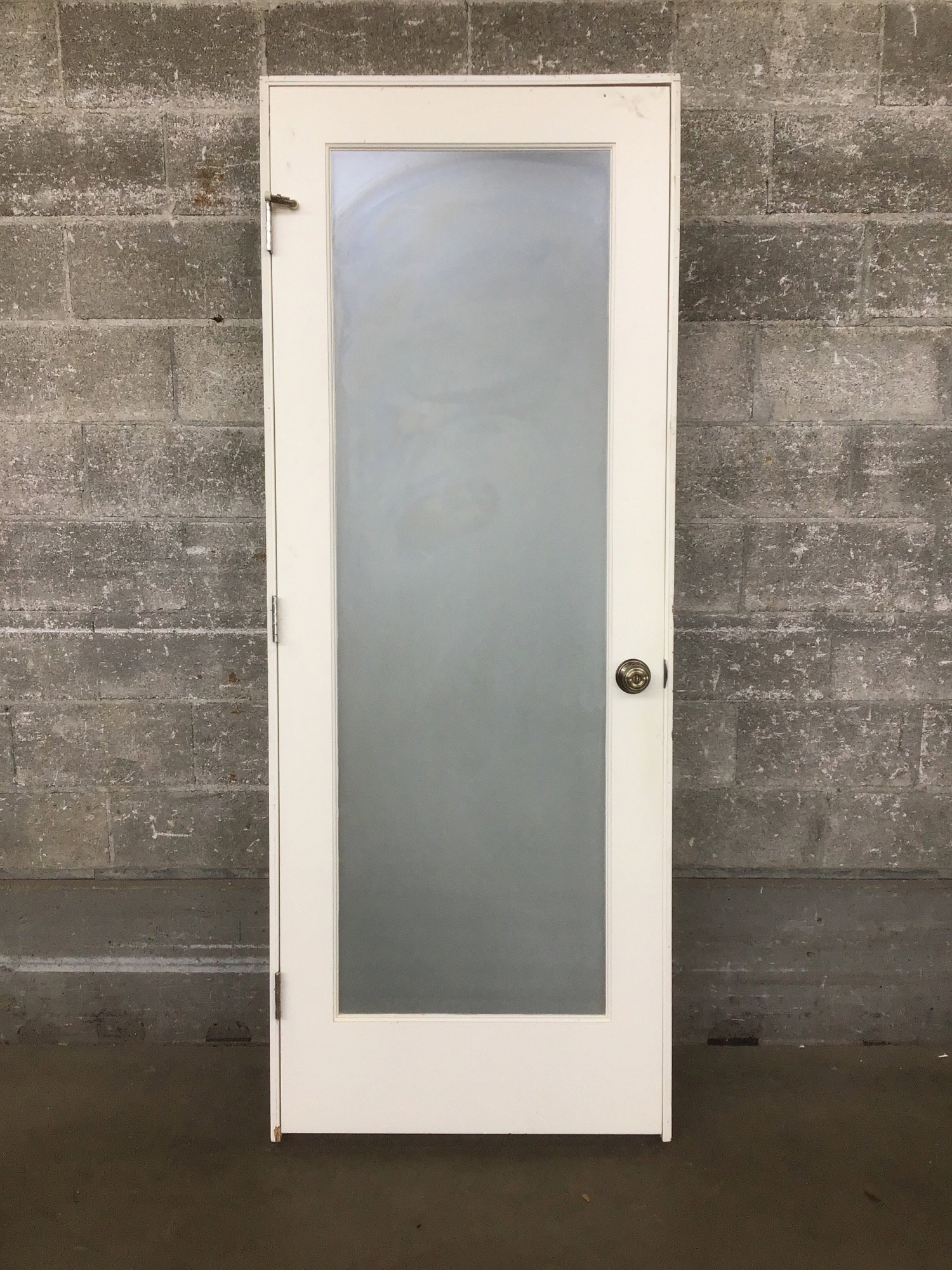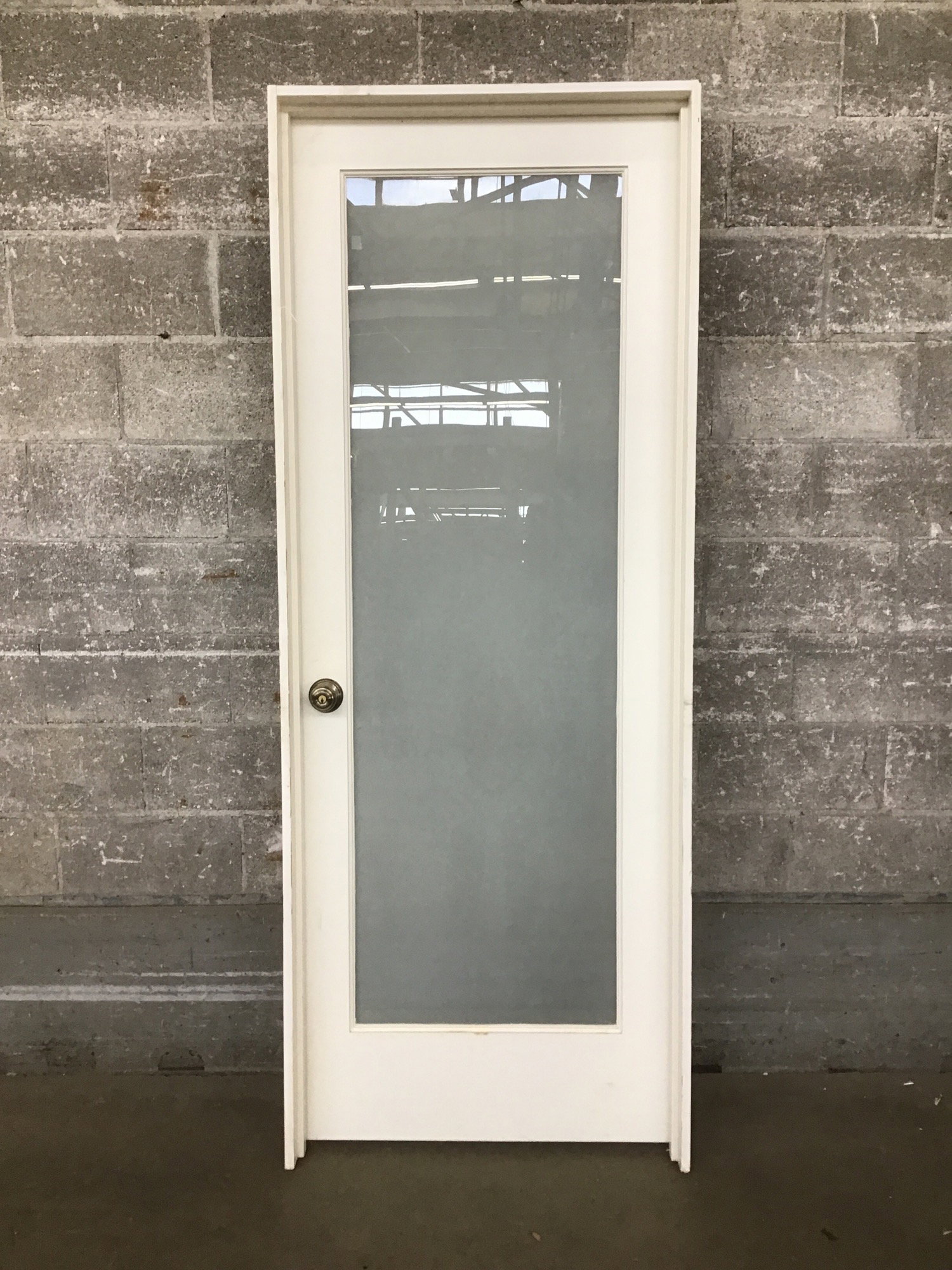 Prehung full lite door with obscured glass to maintain privacy. Exterior thickness, but may be better suited as a garage-to-house door or in an interior space.