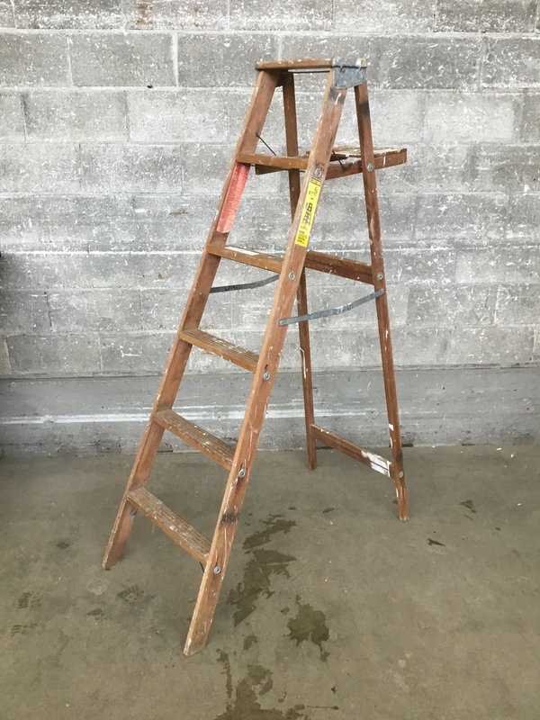 USE AT YOUR OWN RISK! Wooden step ladder with a 200 lb capacity. I'd climb on this one, if that gives you any insight into its sturdiness.