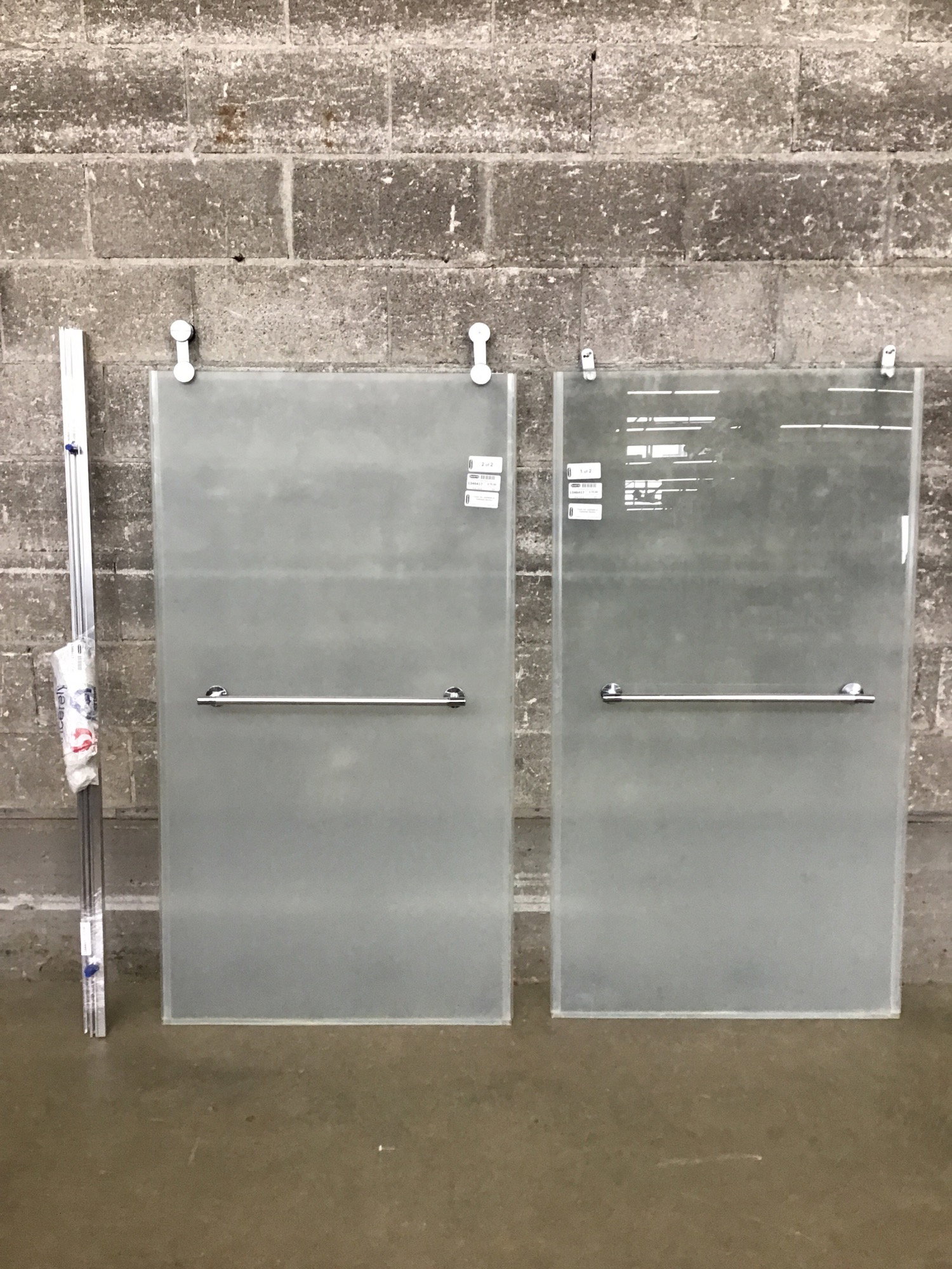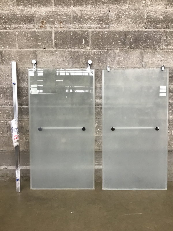Pair of 3/8" thick tempered glass bathtub / shower combo doors, Delta model SGCC-6272. These come with frame and track pieces for a 5' bathtub.