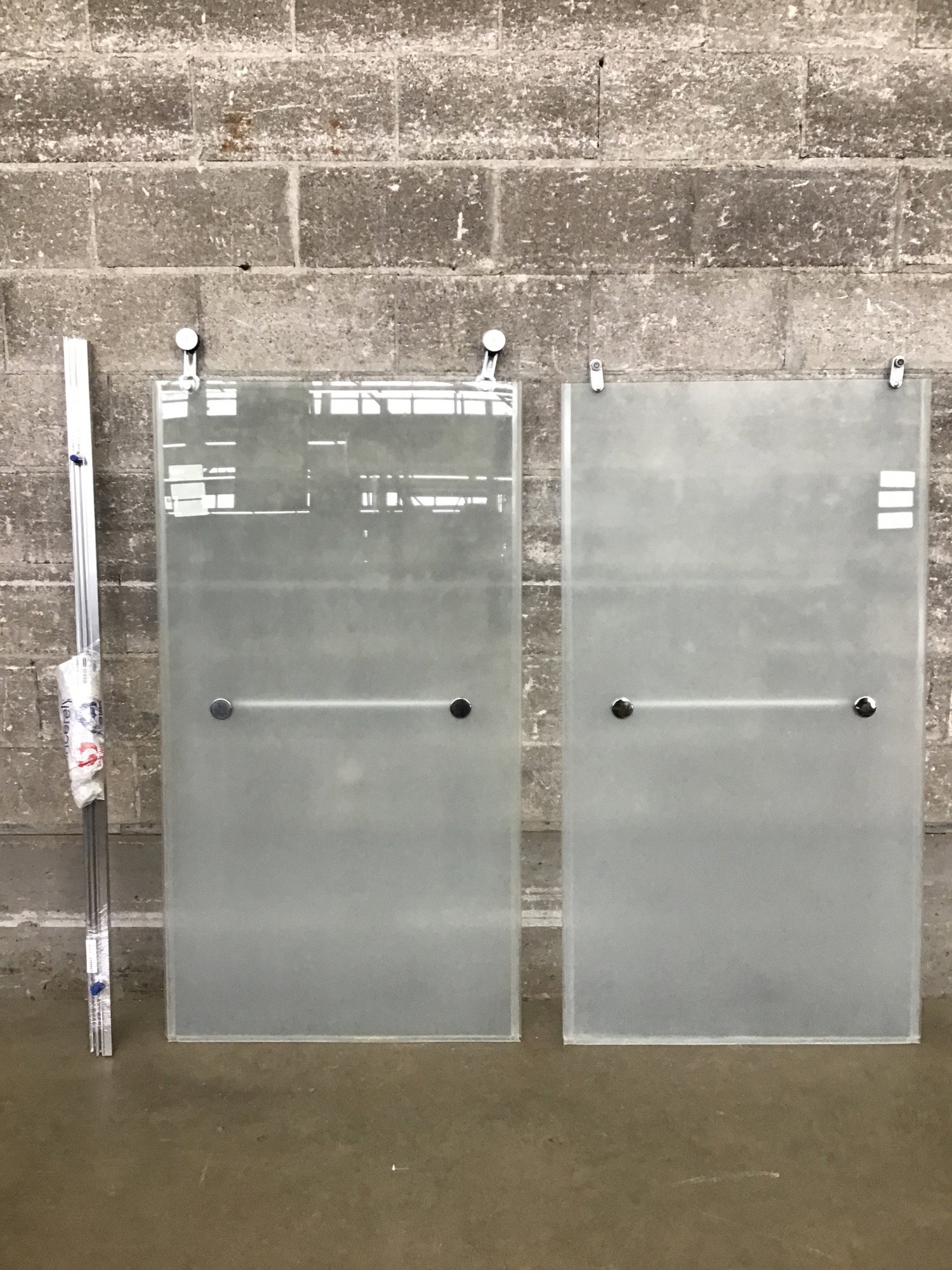 Height listed reflects the base of the door to the top of the rollers. The doors alone measure 55-5/8"H.