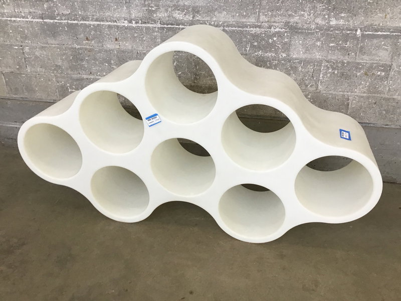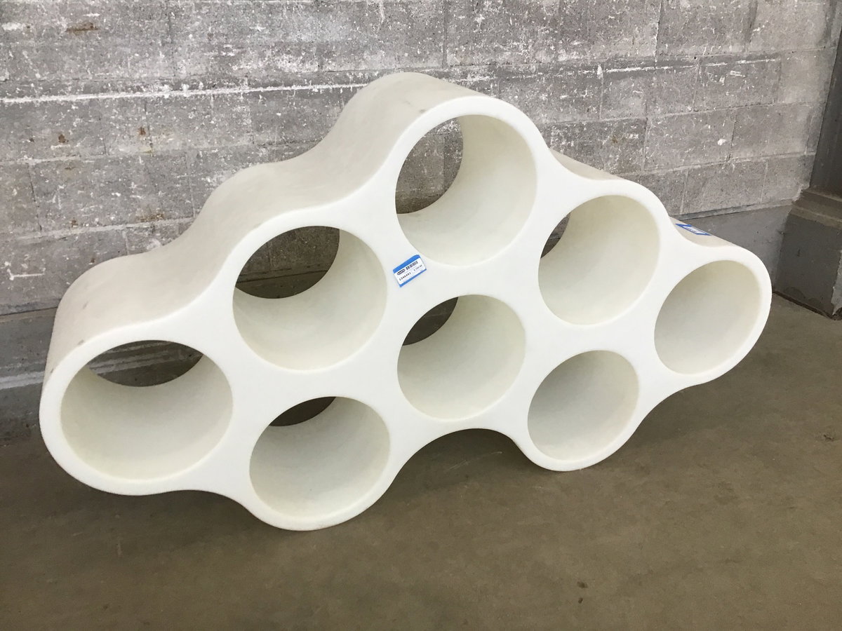 Bring more whimsy into your life! This would make a magical and imaginative shelving option for a young child's room. The cubbies are 13" in diameter. This large plastic shelf can sit in several different orientations and the cubbies go all the way through. It would really be crazy if you backlit it or inserted lighting inside of it. It also could be home for enormous mason bees.