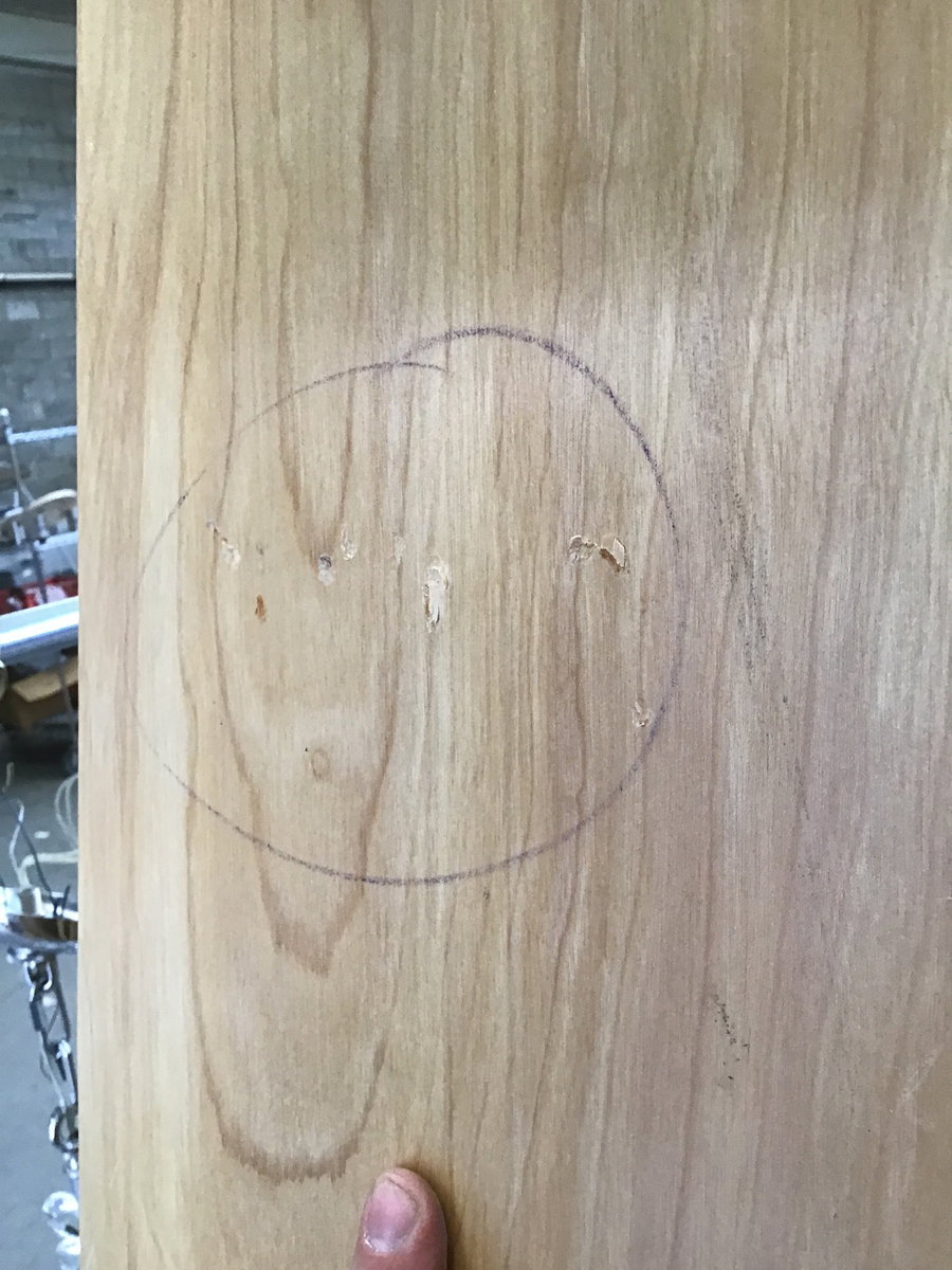 Commercial heavy duty solid core door with a beautiful birch veneer. Was previously installed as a barn door, so has no knob hole or hinge cuts. Exterior thickness, but should be used inside. Has some cosmetic damage, price reflects. Photo may be representational.