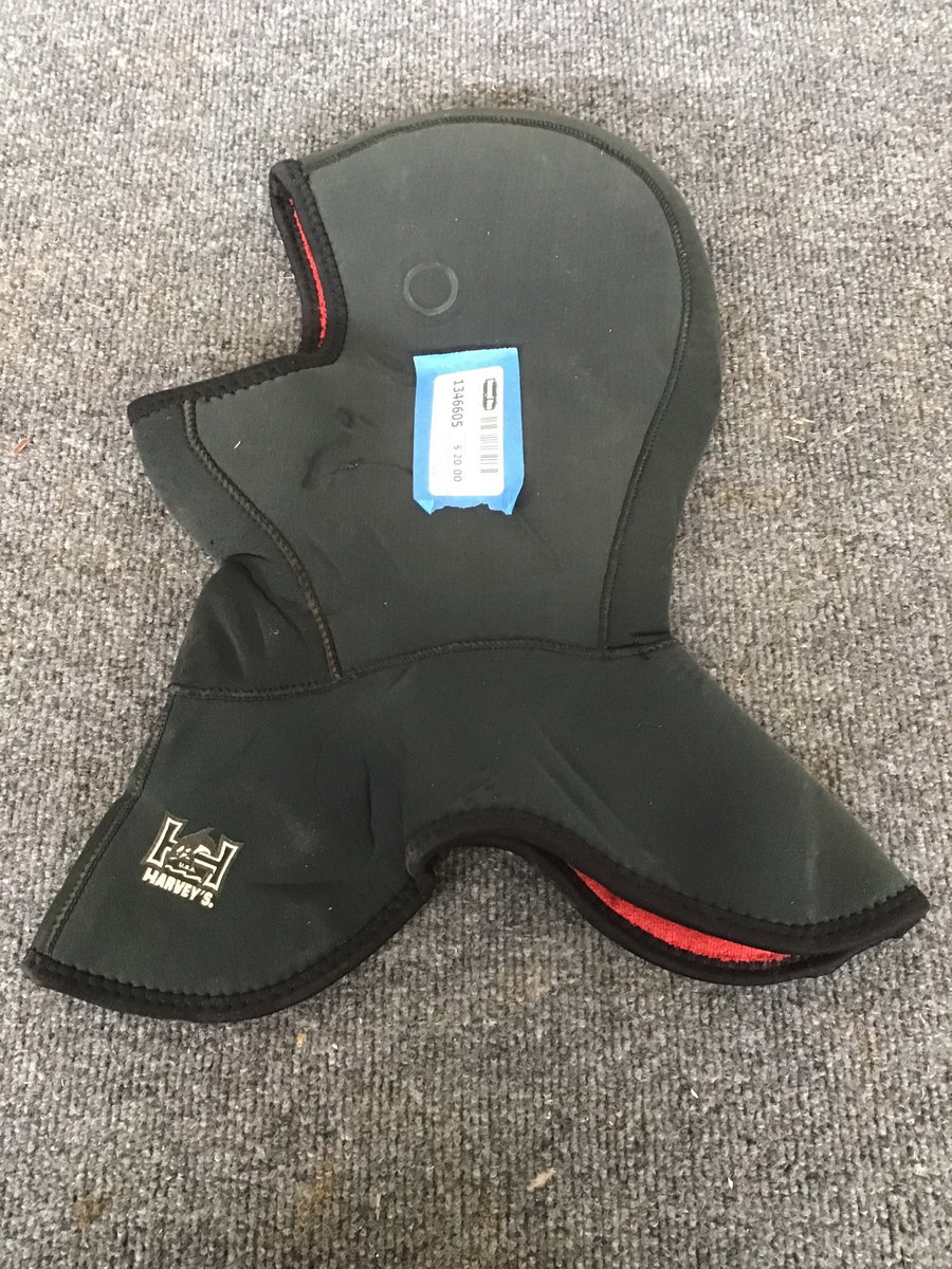 Size Large neoprene hood (7mm?). Does your head get cold when you're bobbing for apples? well you're in luck with this vintage Harvey's (a local brand!) neoprene hood. Looks in good condition and can still work for cold water scuba diving.