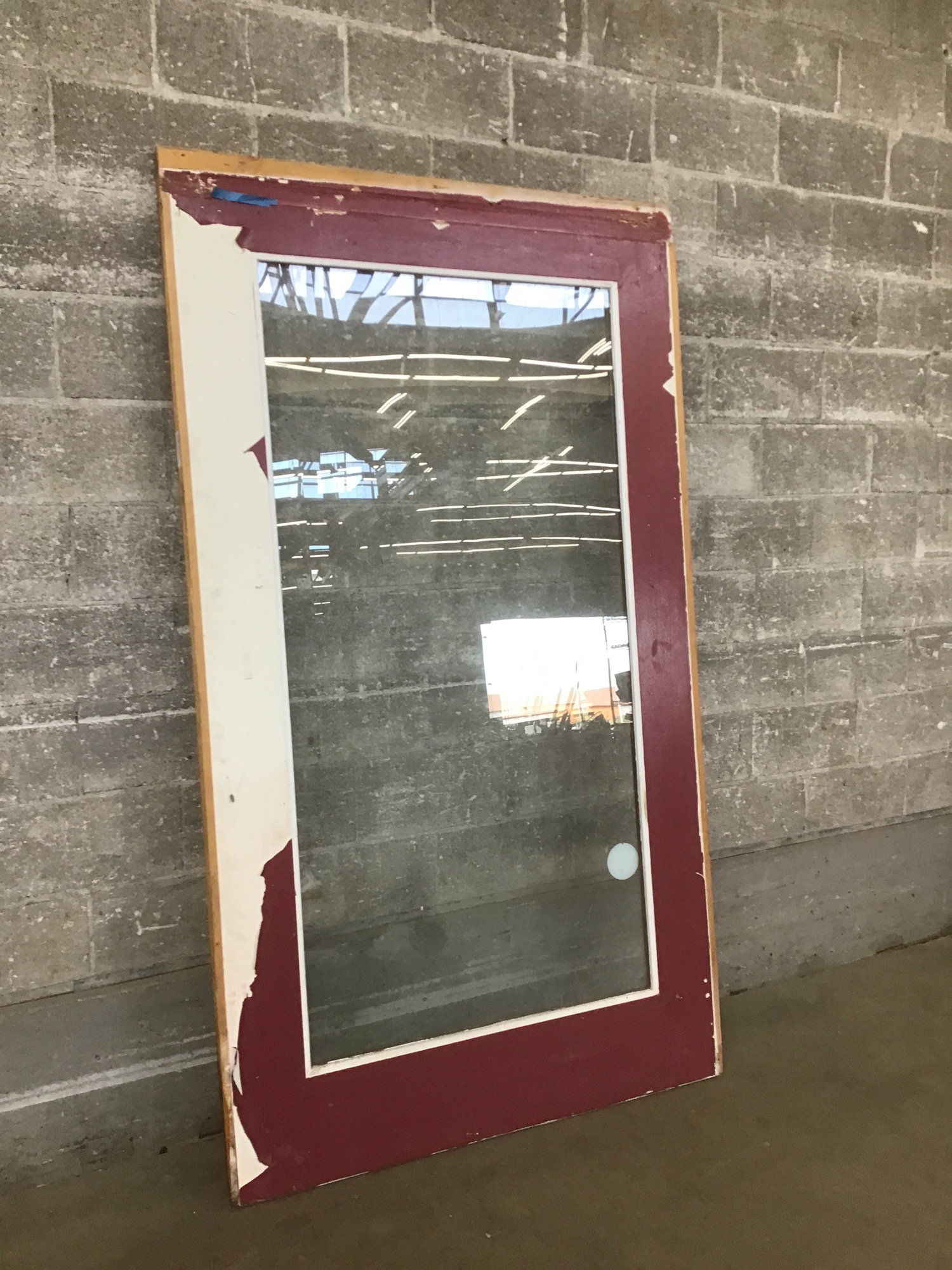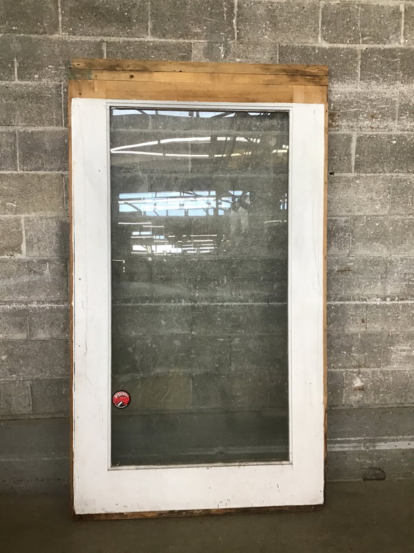Massive exterior thickness door with double pane glass that was previously installed as a stationary panel with a barn style sliding door. Unbored and not hinge cut. Has a couple extra pieces of wood attached to the top (not included in height). A bit rough around the edges and could use some sprucing up.