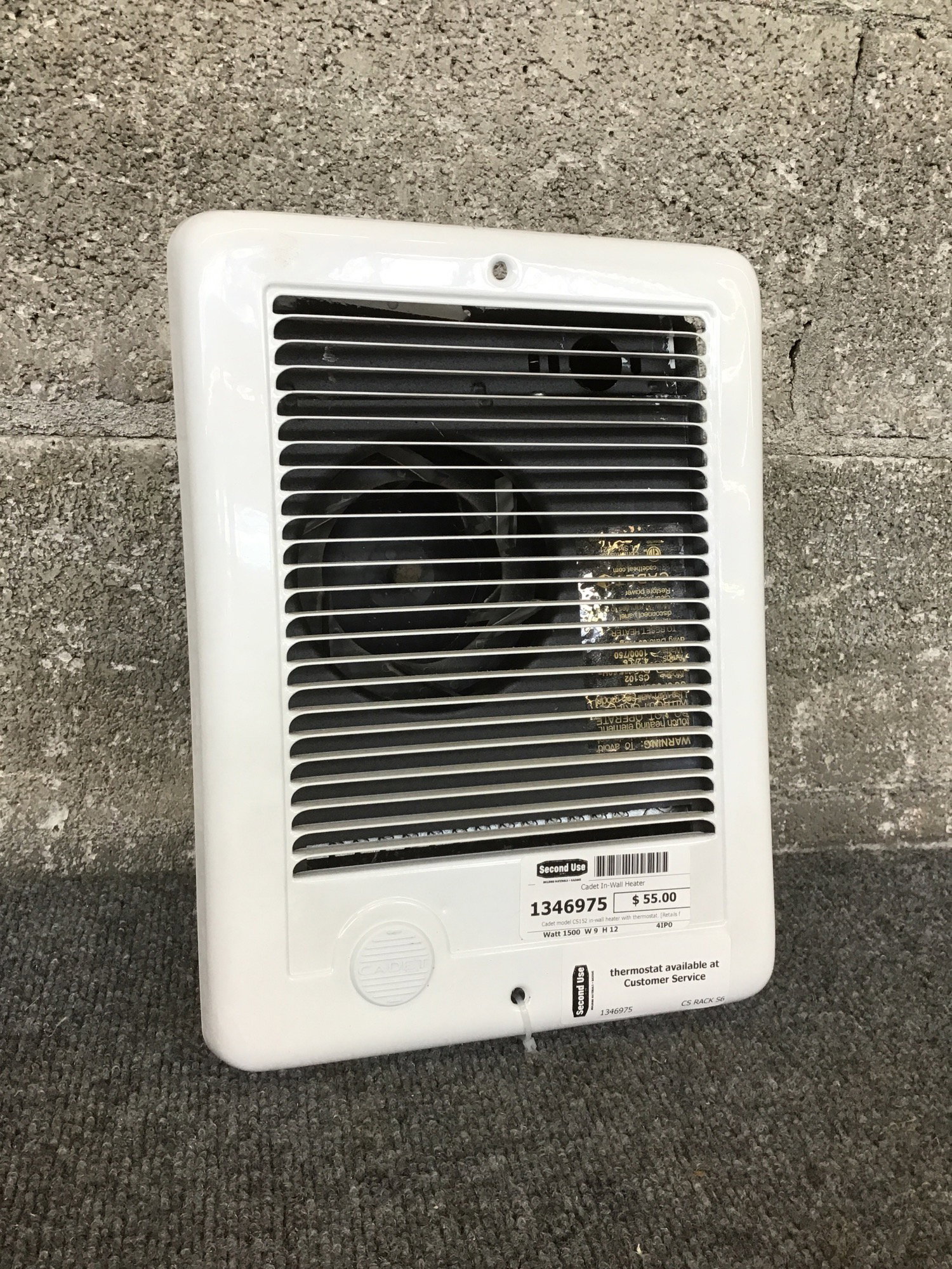 Cadet model CS152 in-wall heater with thermostat. Retails for $99 (sans thermostat) at Home Depot. Photo may be representational.