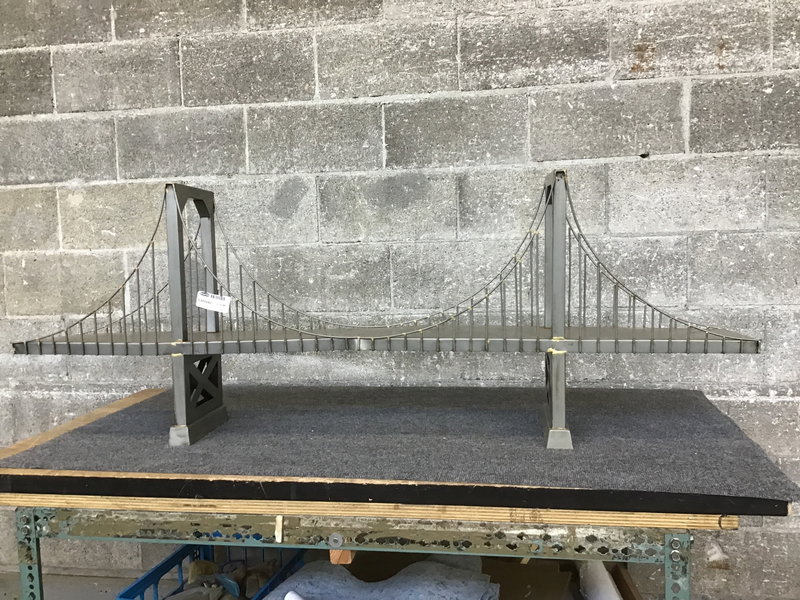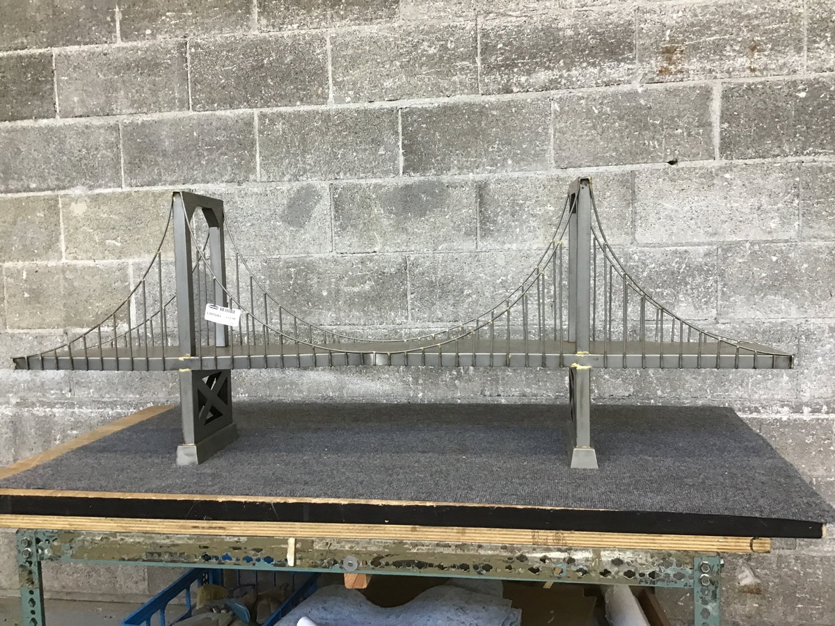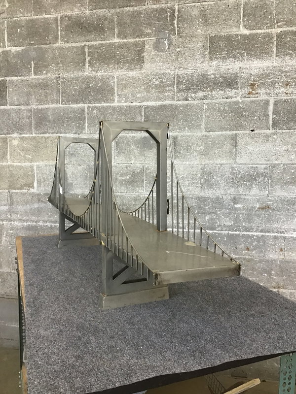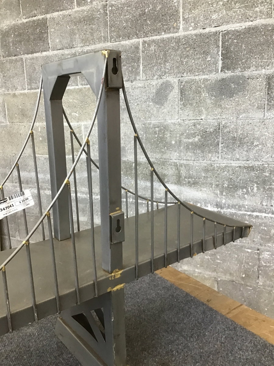 Fun all metal bridge sculpture that can be wall hung as a shelf.