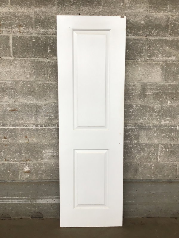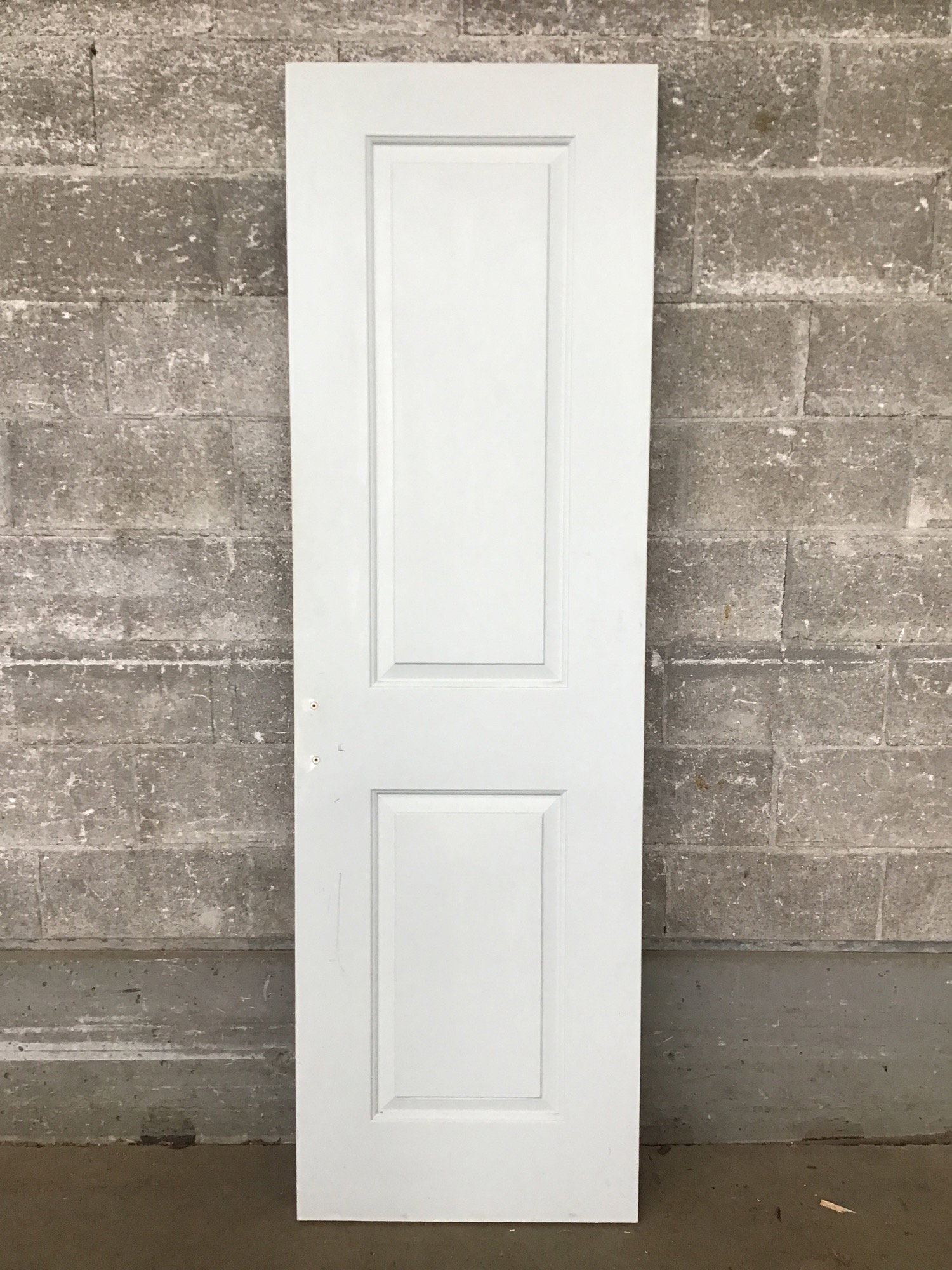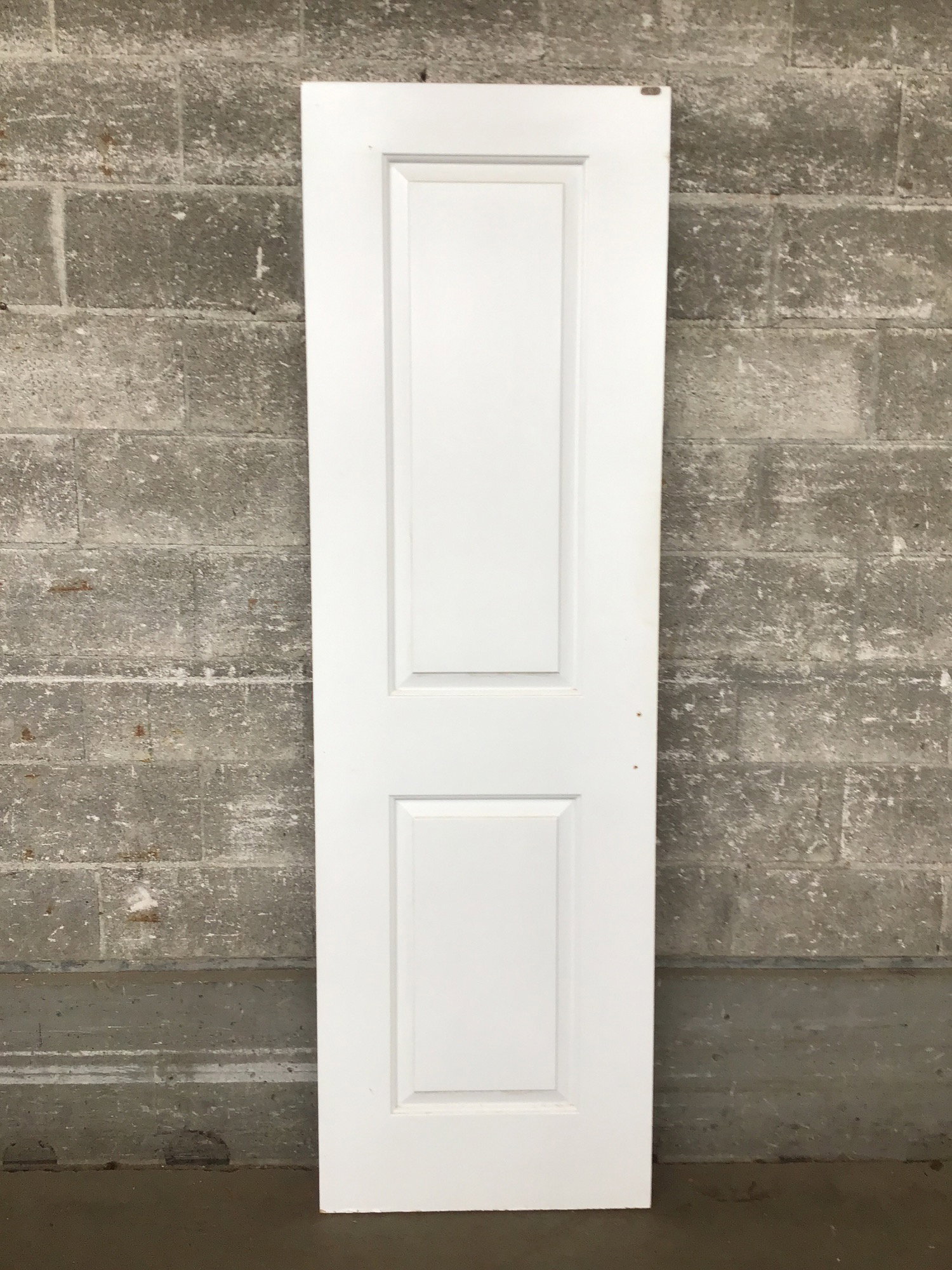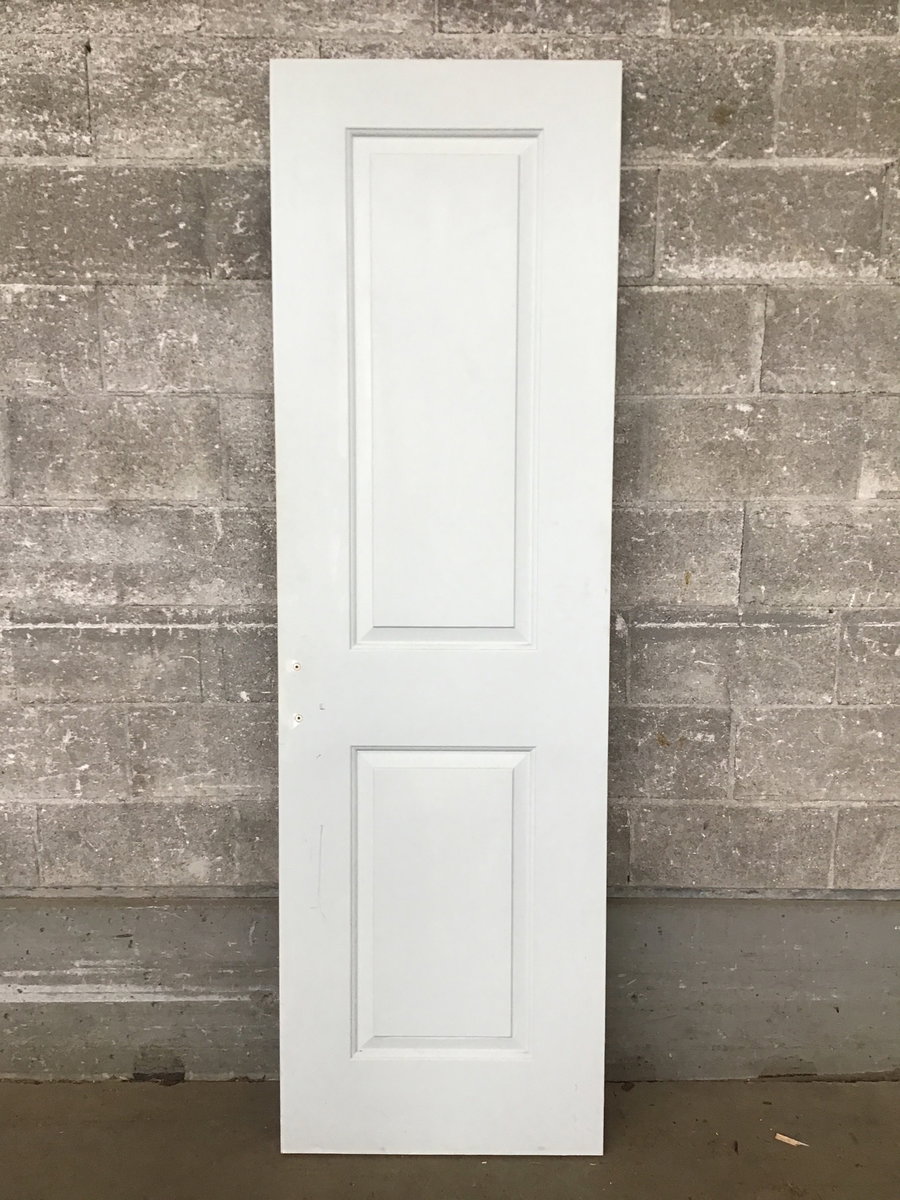 24in hollow core 2 panel door. Has a couple layers of paint, but no hinge cuts so you can choose your swing.