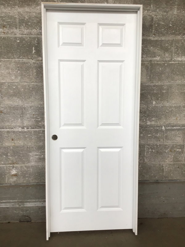 Faux six panel (smooth) hollow core door in jamb for 2x4 wall.