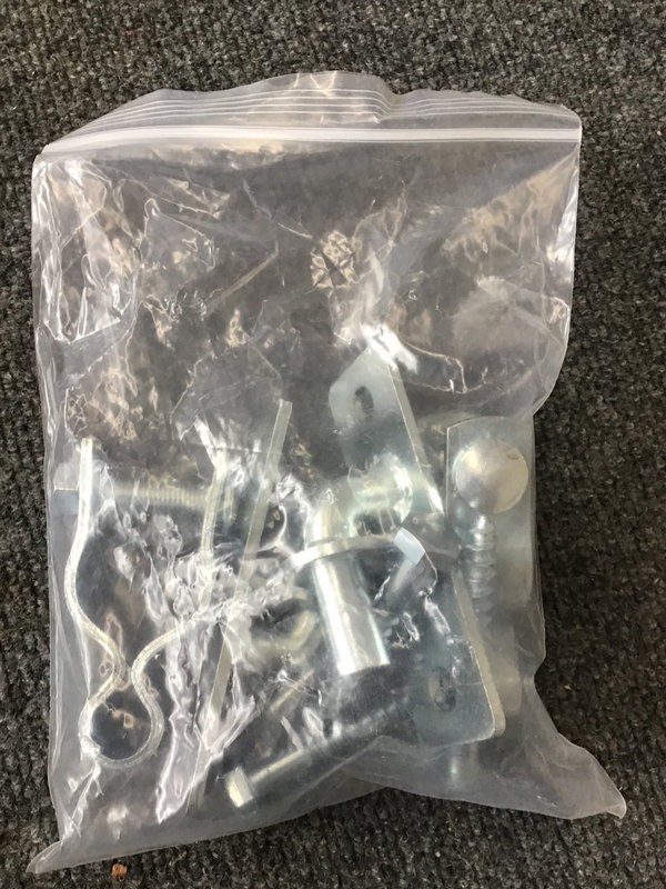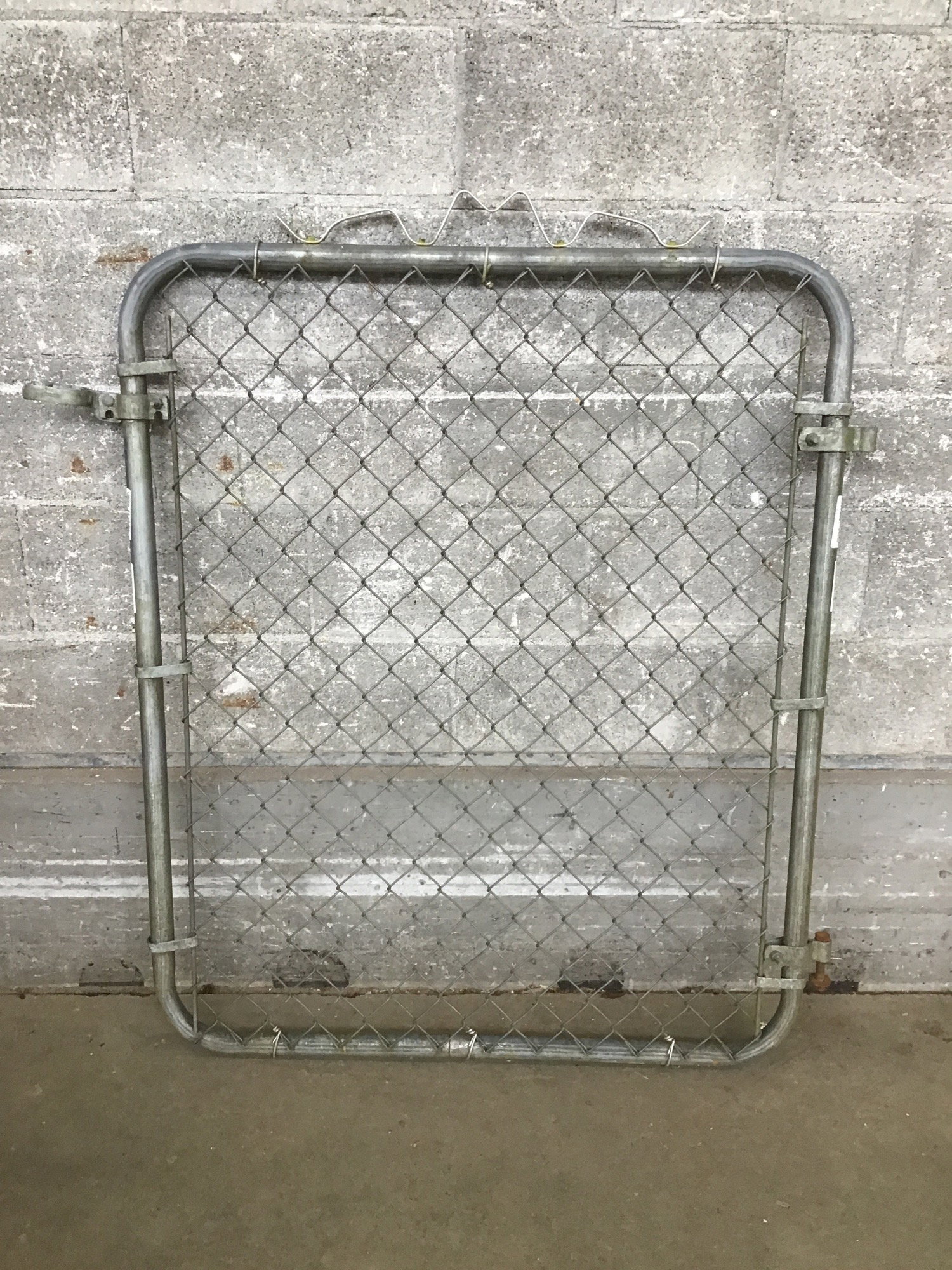 Weathered, but not too weathered, chain link fence gate for ~3 1/2' wide opening with the included hinges and latch.