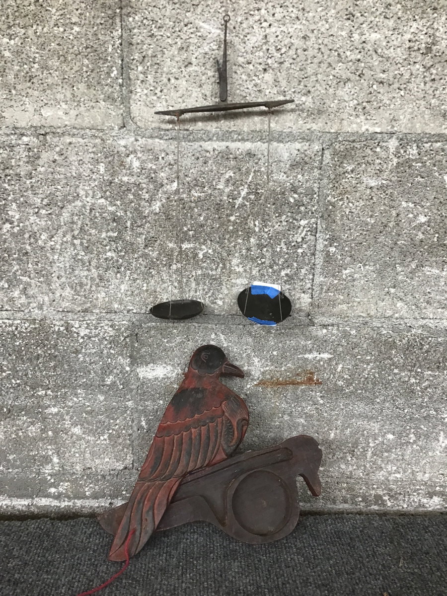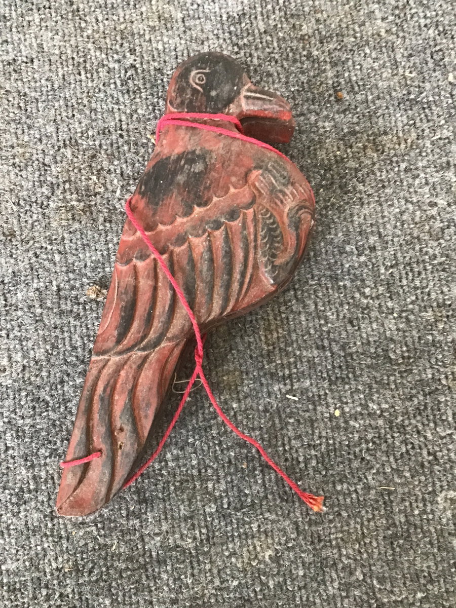 A charmingly carved bird (pheasant perhaps? blackbird?) box that pivots open to reveal a handheld opium scale concealed inside, likely dating to the early 20th century. This is an interesting and attractive artifact for a collection, or it could be put to practical use once more - maybe for something a little ~greener~ than opium! Concealed opium scales like this come up fairly often, typically with a carved poppy motifs, but this bird form is unusual and harder to find.