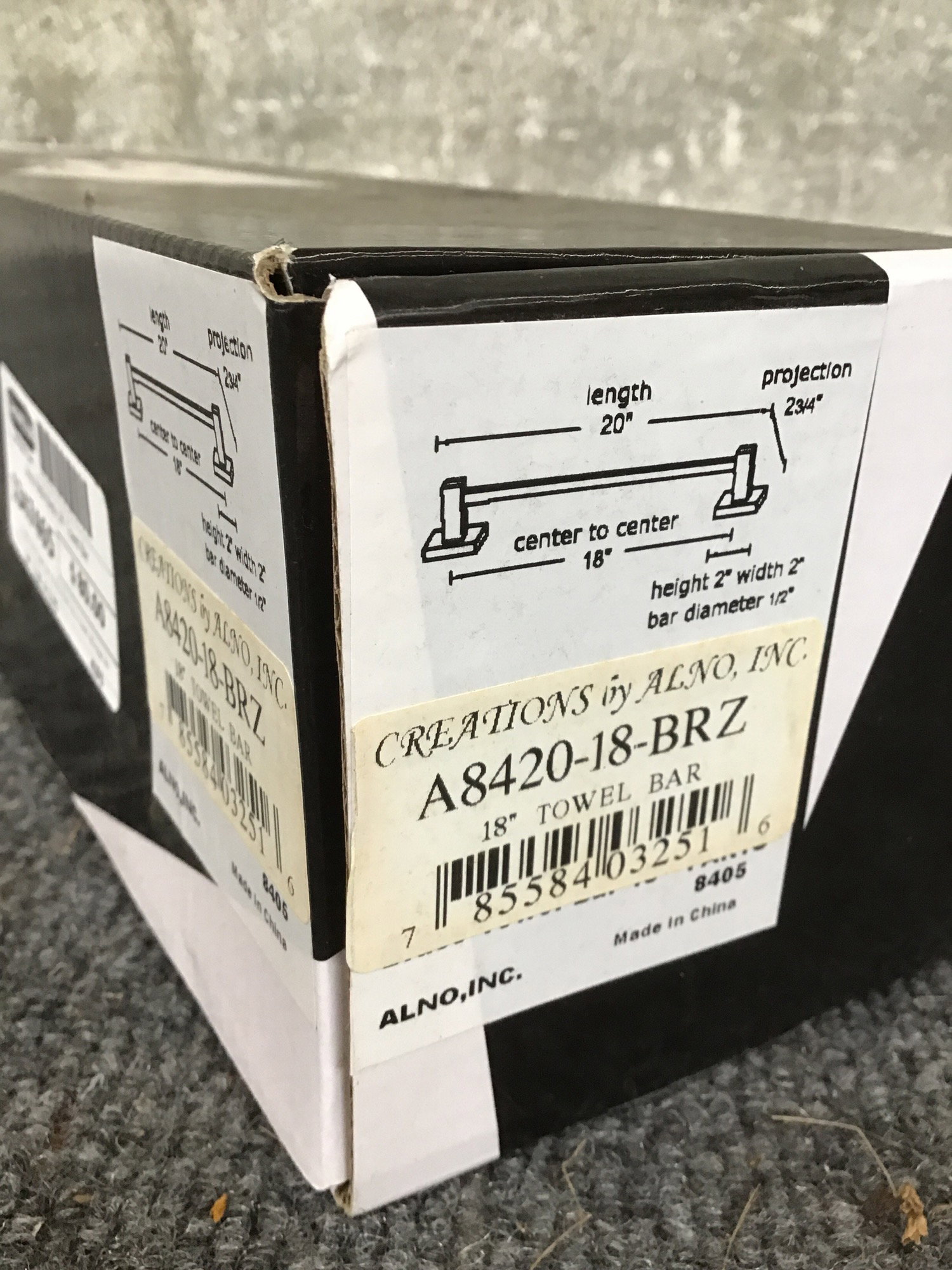 A matte black towel bar by Alno that has a towel storage length of 18". Arrived in excellent condition in original packaging. Photo is representational. This looks to retail new at $159.96.