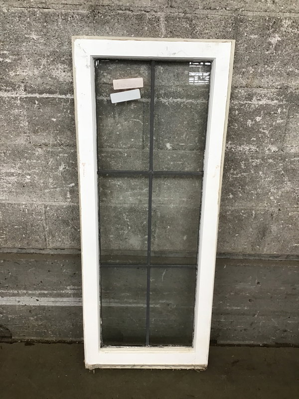 Six lite leaded glass sash, glass and lead are intact. Wood frame is looking a little weathered and may have some mending clips holding the corners together. Price reflects.