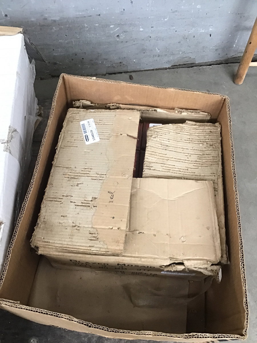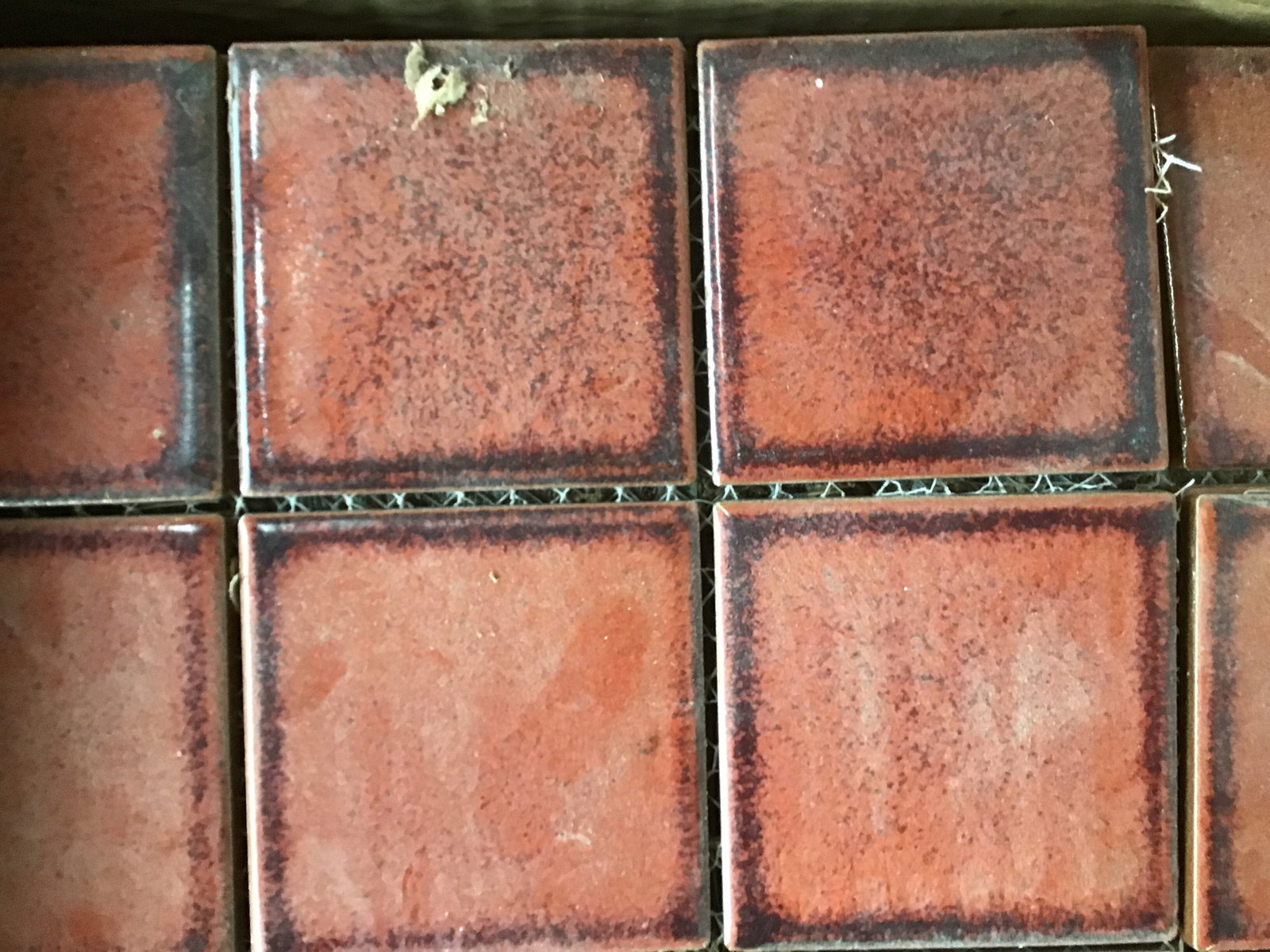 Eighteen full sheets of 3 1/8" square mosaic tile in sort of a "Burnt Red" color. There should be enough to cover ~20 square feet.