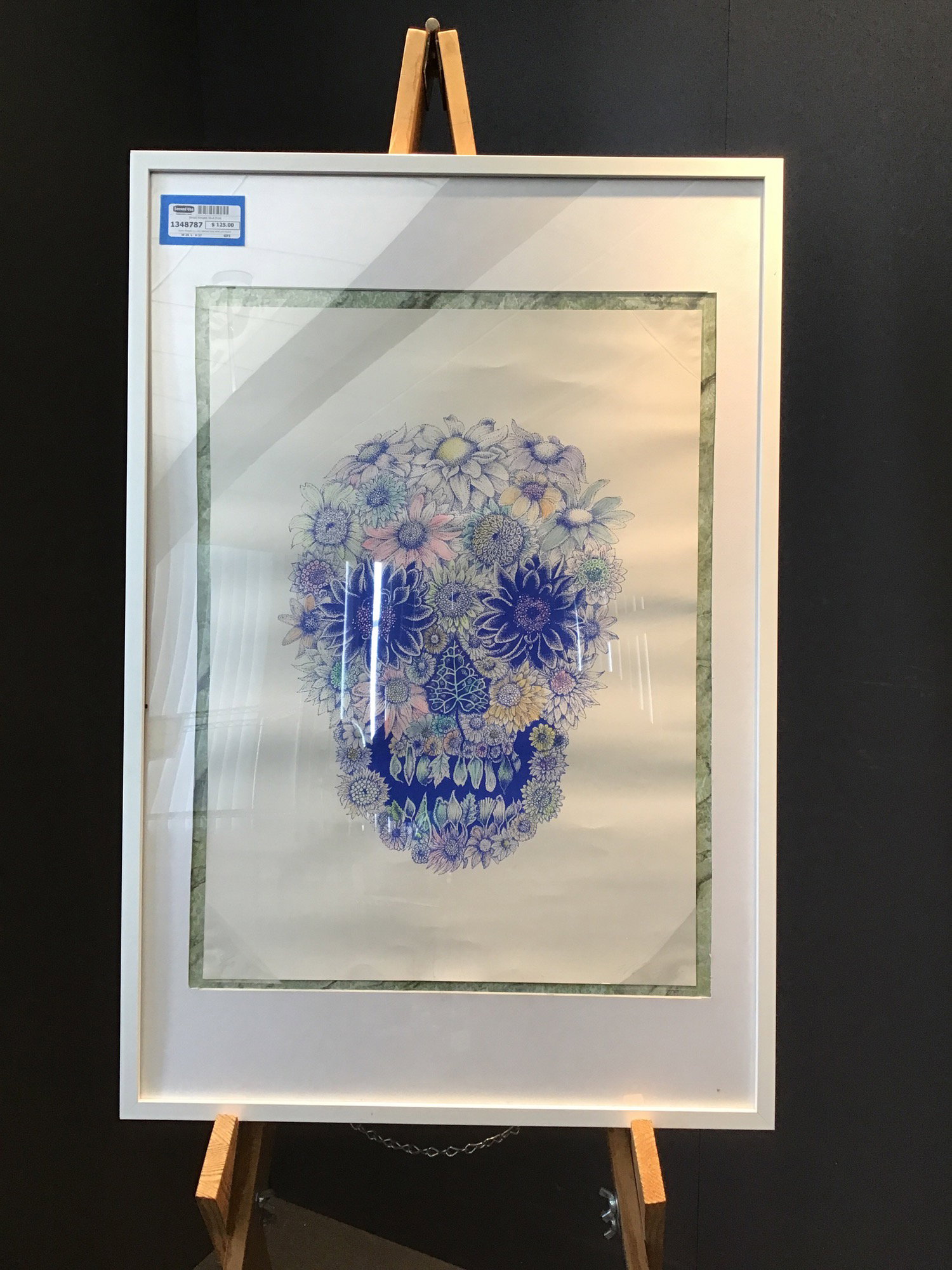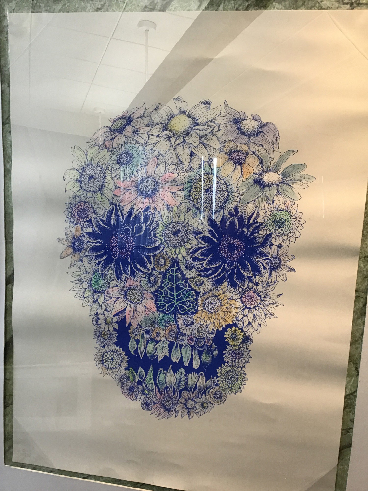 Isvald Klingels is a very talented local artist and illustrator who has had commercial art with companies from Volvo to Vogue! This is print is of a multicolored skull made up of various flora and is sitting in a classic IKEA frame. Signed by the artist on the bottom right corner and numbered 40/100.
