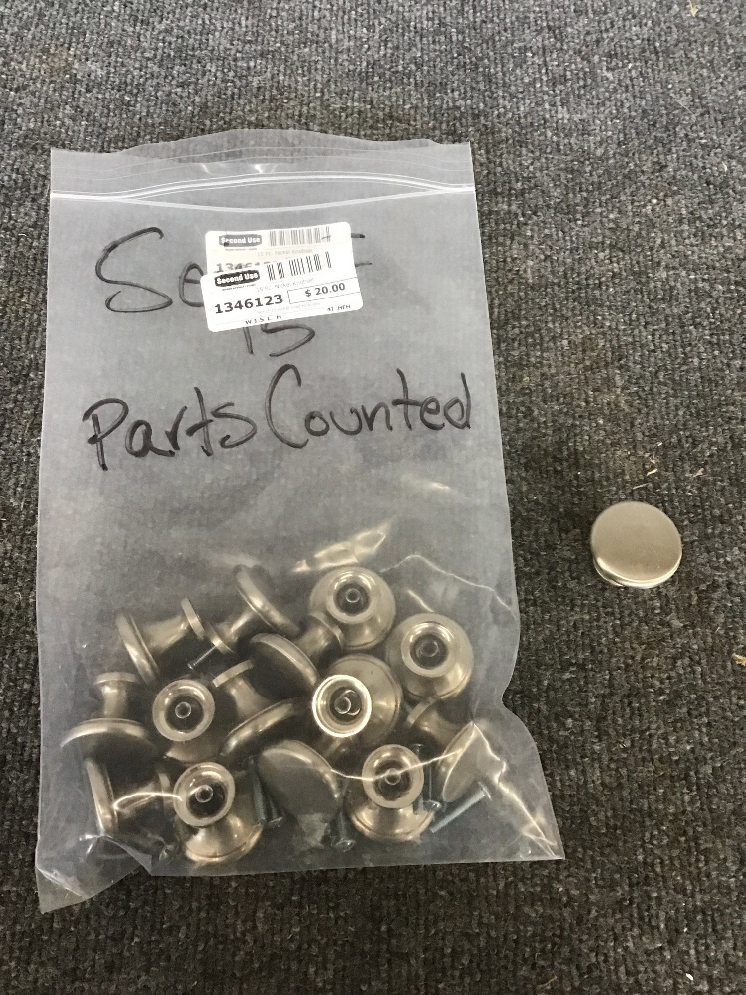 Set of 15 nickel finished knobs.