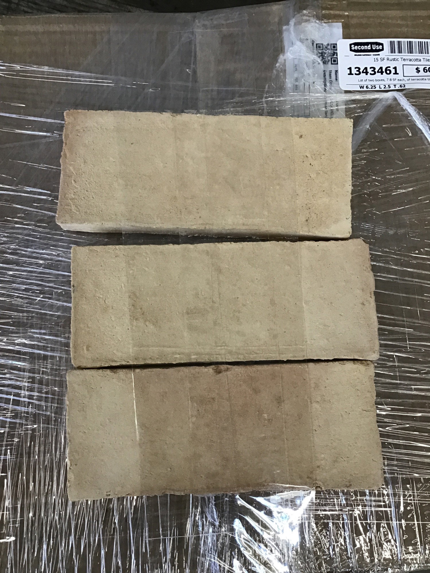 Lot of two boxes, 7.8 SF each, of terracotta tile with a light, natural finish. If this isn't quite enough for your project, the same tile is still available online here.