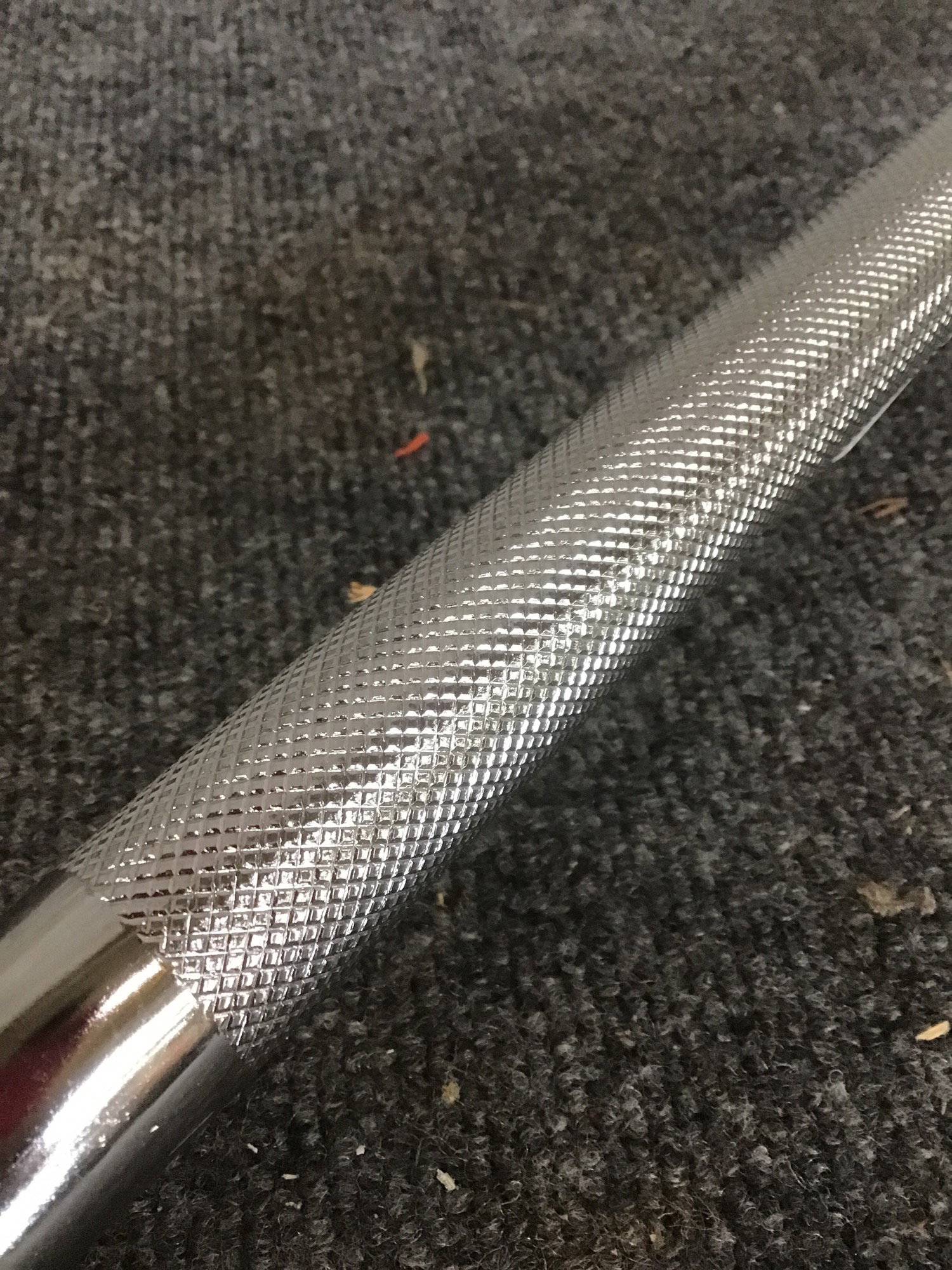 Smaller diameter grab bar with knurled, or textured, handle. Screws directly to wall and still in wrapping with screw pack. Photo may be representational.