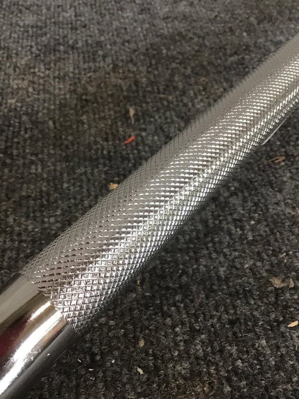 Smaller diameter grab bar with knurled, or textured, handle. Screws directly to wall, no screws with this one.