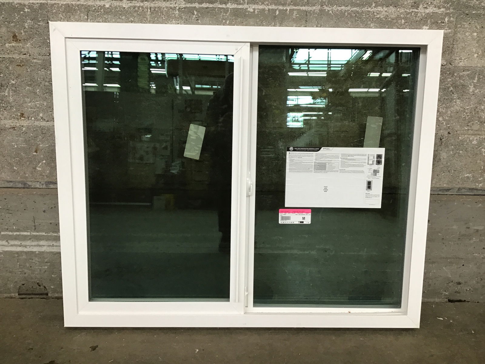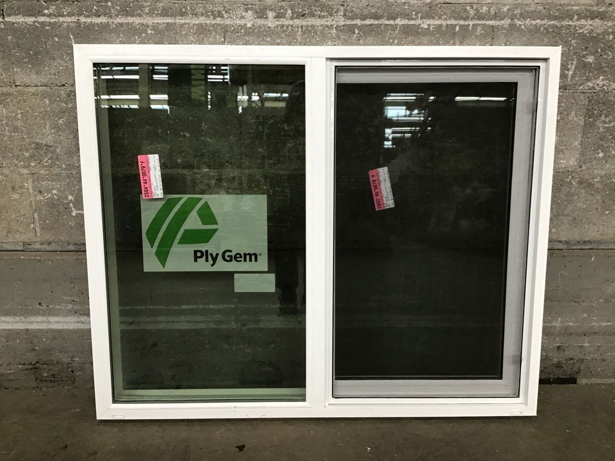 New, never installed PlyGem OX vinyl slider with energy tags still attached.