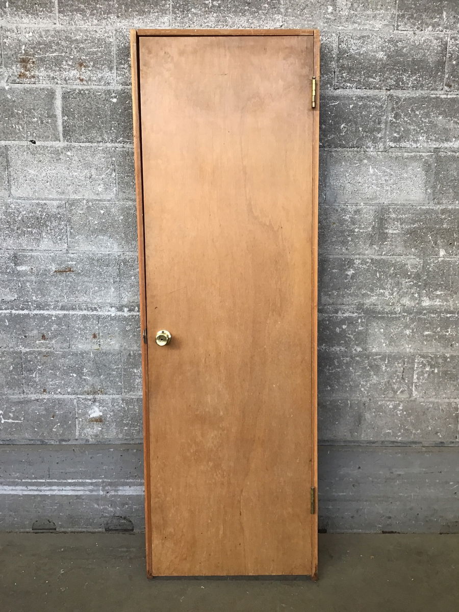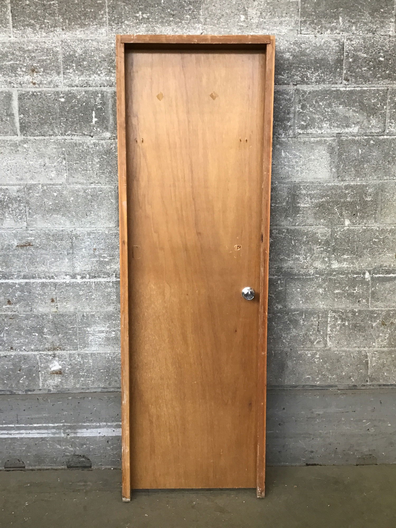 Classic mid-century slab door with Birch veneer and Mahogany jamb, includes hardware. This one is short, the jamb is narrow and has cosmetic issues.