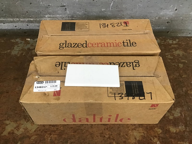 Lot of two boxes, 12.5 SF each, of Daltile Arctic White subway tile. Need a little more for your project? The same tile is still available online for $2.74/SF.