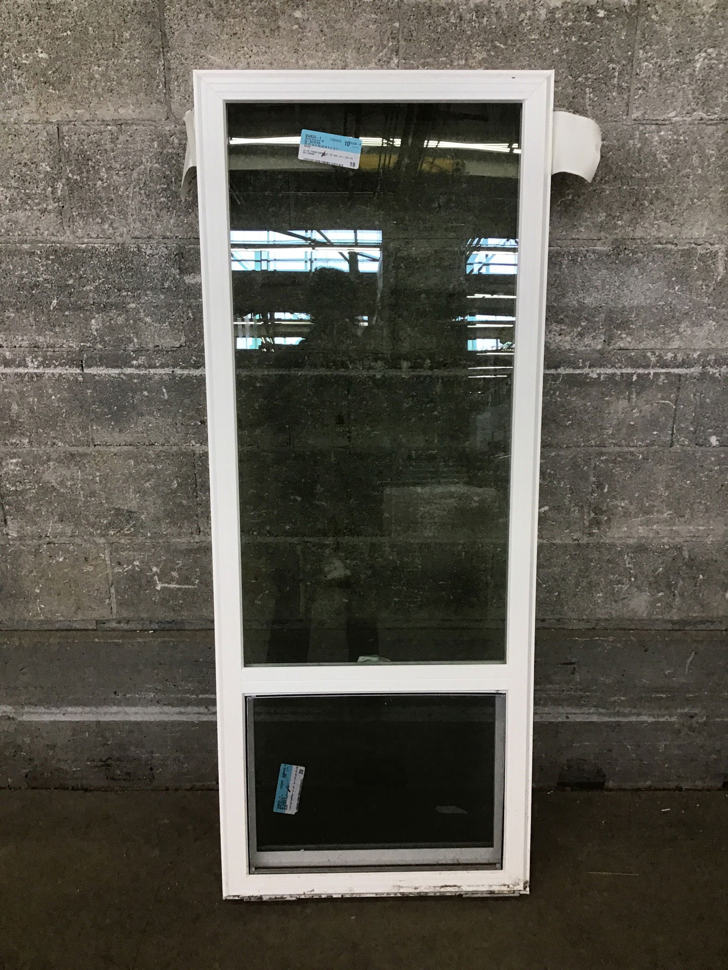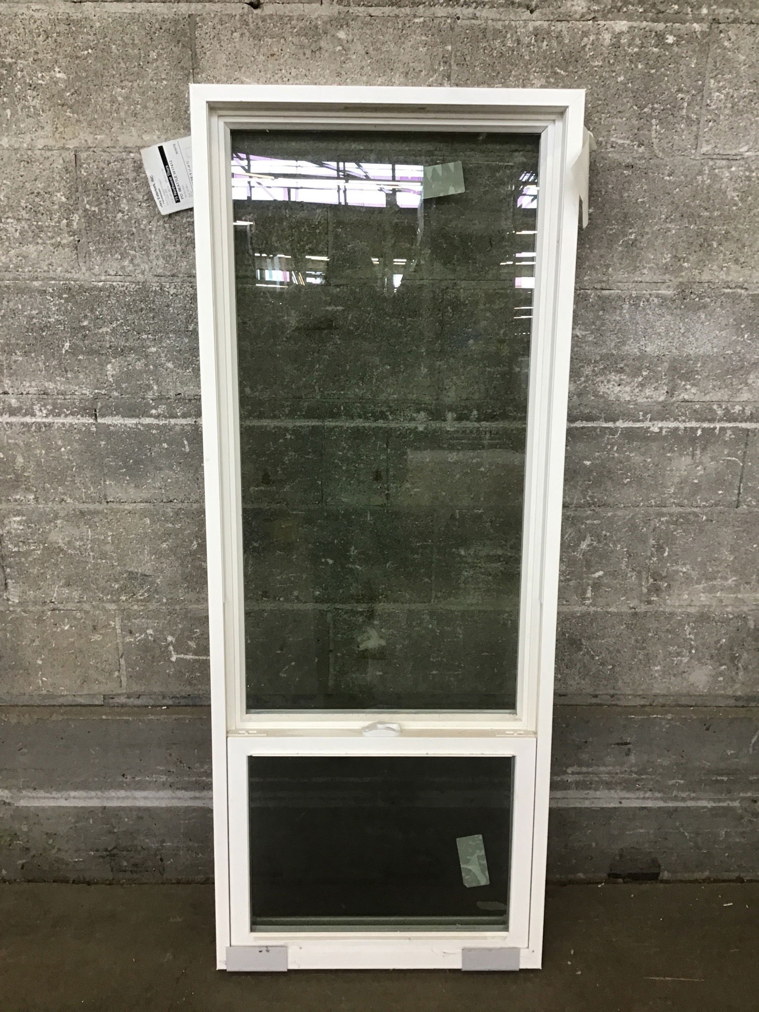Ca. 2025 tall, white vinyl single hung window that has never been installed.
