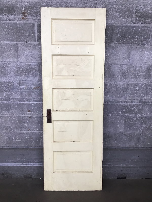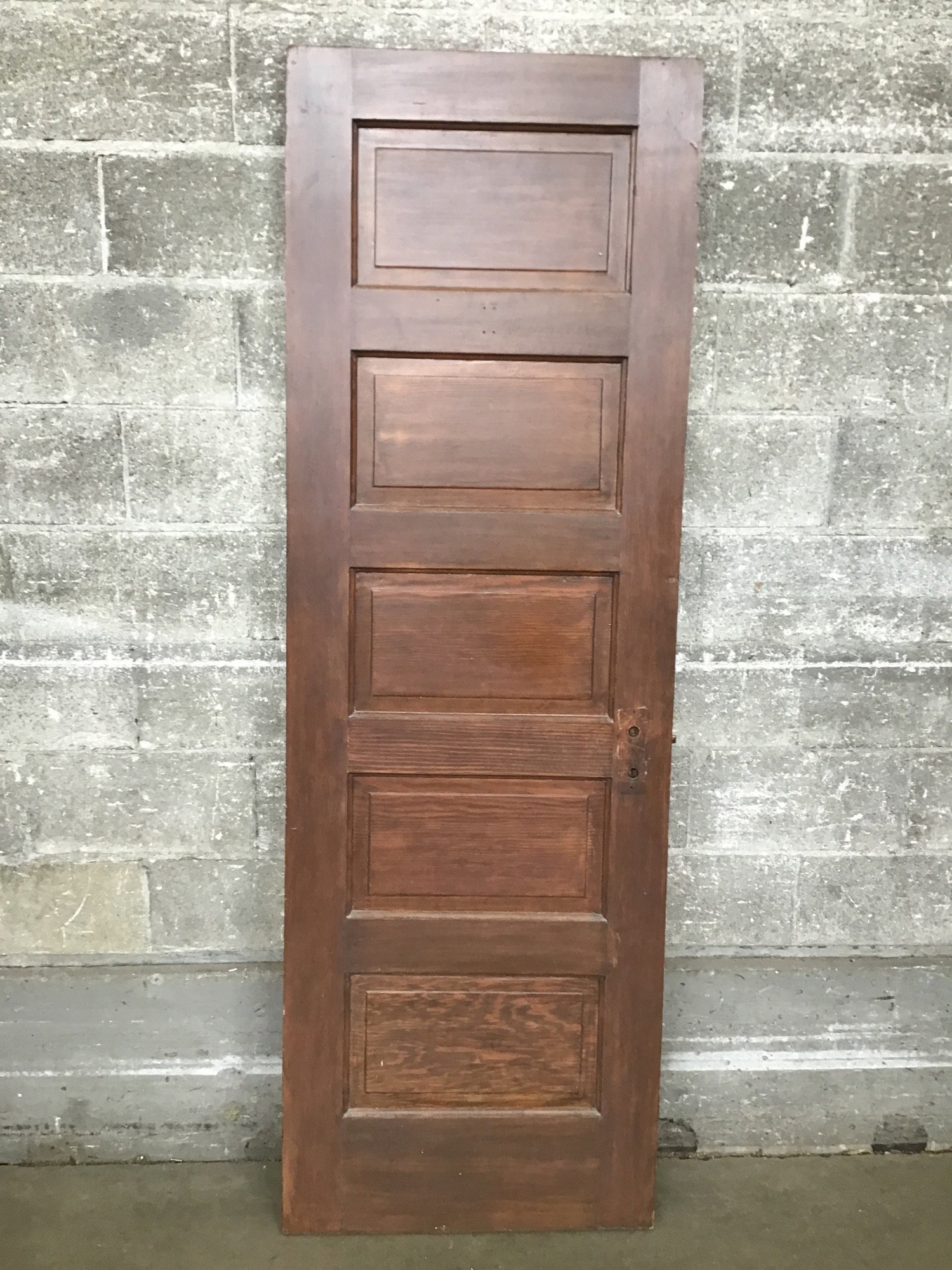 Vintage raised five panel fir door. Painted on one side, dark stained on the other.