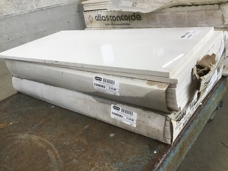 Two full boxes of six tiles per box (size listed) and two extras, B&W White