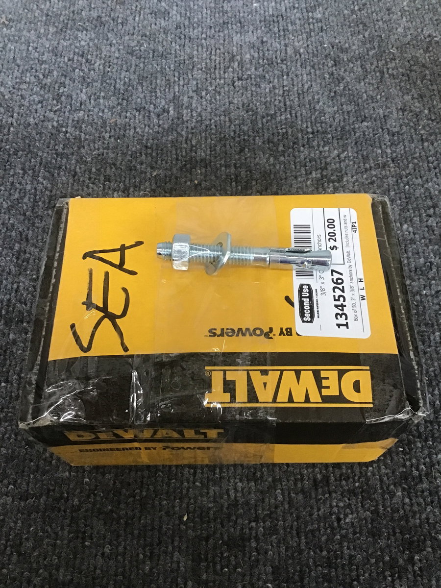 Box of 50. 3" x 3/8" anchors by DeWalt. Includes nuts and washer.