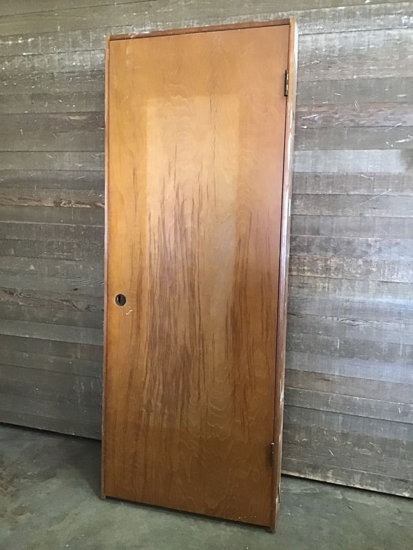 30" hollow core door with a stained Beech veneer, pre hung and 32" wide counting the jamb. left hand swing and has a bore hole already cut into it. May have some minor cosmetic damage, price reflects.