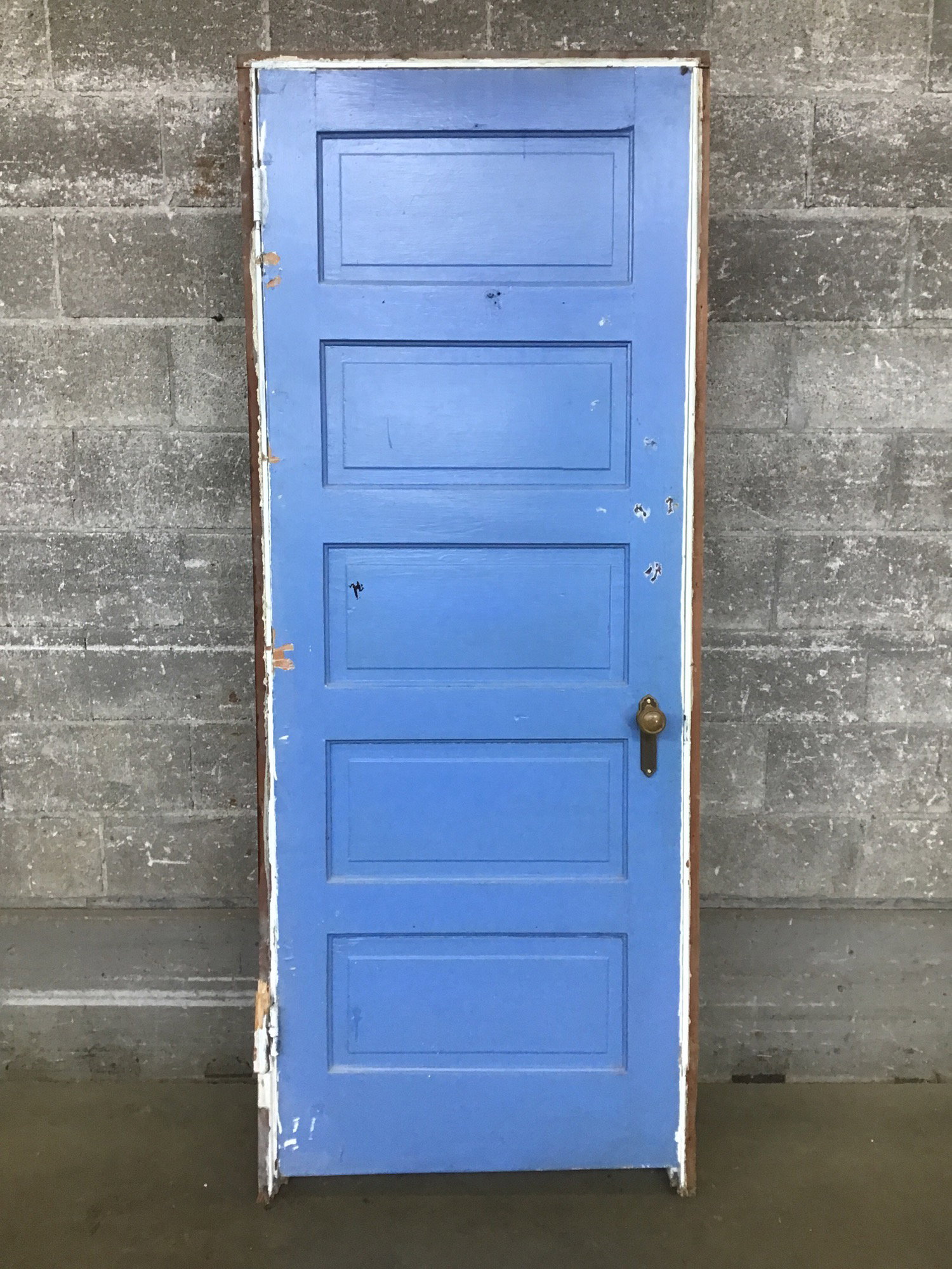 Prehung 5-panel door in used but reusable shape. Jamb is thicker and wider than standard, note dimensions.