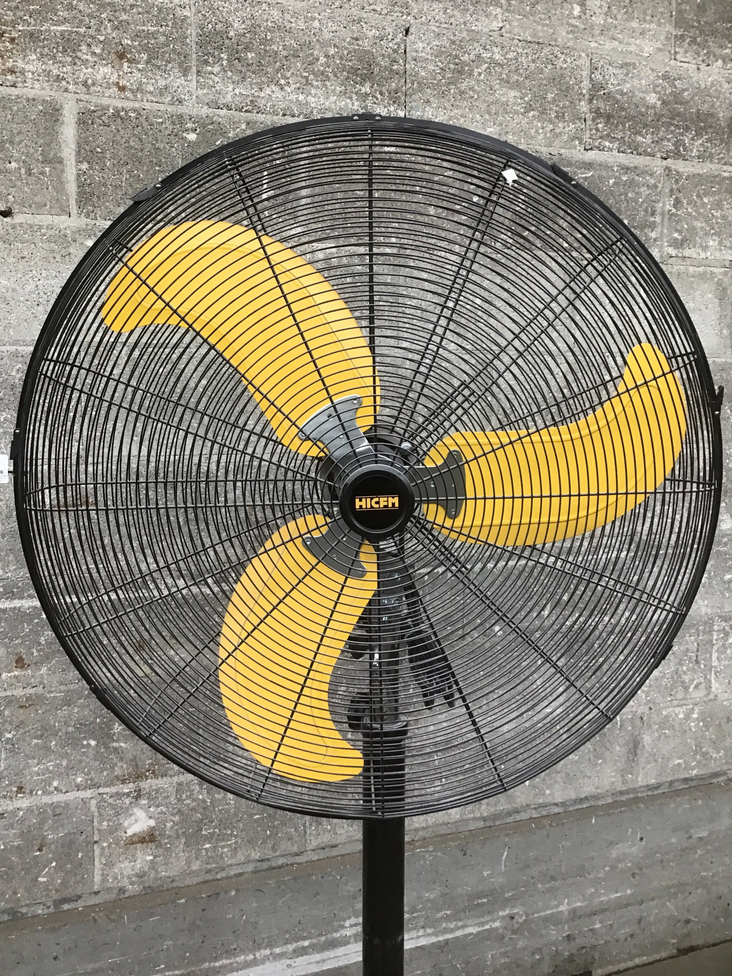 An industrial pedestal heavy duty shop fan by HICFM. Model SFSI-750MW, oscillates and has a three speed fan option. Tested in house and seems very functional. This retails new at $238.26.