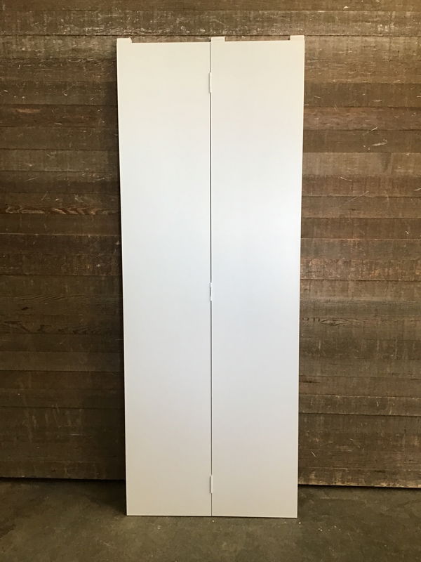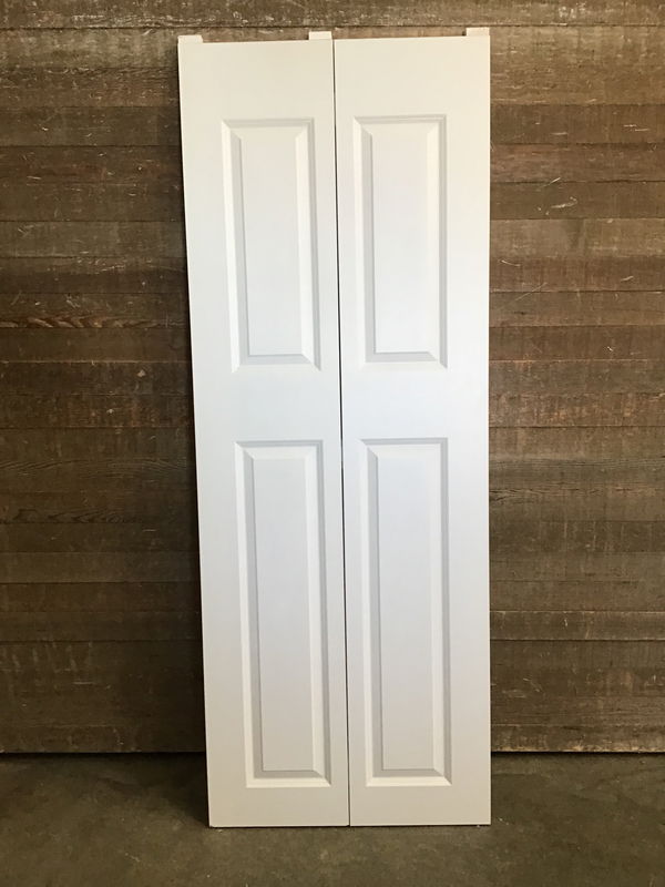 New, never installed 30" hollow core bi-fold door with four faux raised panels. This door is primed and ready to paint the color of your choice. There may be some minor cosmetic damage. Does not come with track or hardware.